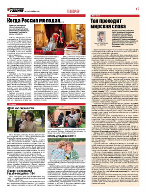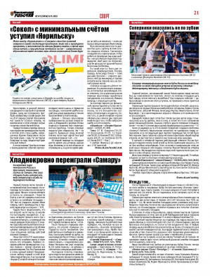 В номере вы найдёте также новости, подборку информаций о законах, вступающих в силу в ноябре, письма читателей, тематические страницы "Спорт", "Полезно знать", "Телевечер", стихи поэта Николая Ерёмина и сочинения читателей, публикуемые под рубрикой "Свой стиль", ТВ-программу на неделю и недельный гороскоп, прогноз погоды и информацию о благоприятных и неблагоприятных днях.