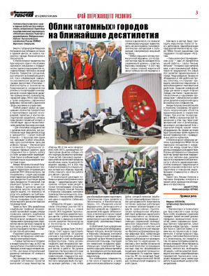 Гостями Красноярского края в первые рабочие дни января стали генеральный директор государственной корпорации "Росатом" Алексей Лихачёв и руководитель Федерального медико-биологического агентства России (ФМБА) Вероника Скворцова. Вместе с губернатором Михаилом Котюковым они побывали не только в краевом центре, но также в "закрытых" городах Железногорске и Зеленогорске. В Железногорске правительство Красноярского края и "Росатомом" заключили соглашение о сотрудничестве, подписи под документом поставили Михаил Котюков и Алексей Лихачёв. Предметом соглашения, рассчитанного на ближайшие десять лет, стало опережающее социально-экономическое развитие двух городов присутствия "Росатома" - Железногорска и Зеленогорска.