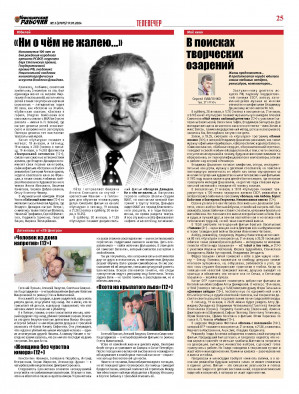 В номере вы найдёте также новости, газету в газете "Новый вторник", письма читателей, тематические страницы "Спорт", "Полезно знать", "Телевечер", ТВ-программу на предстоящую неделю и недельный гороскоп, прогноз погоды и информацию о благоприятных днях.