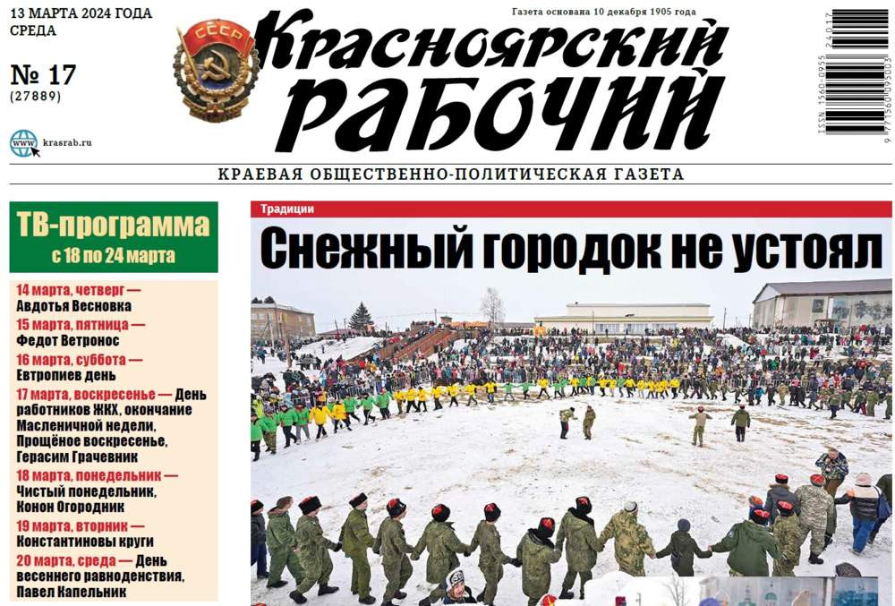 Читайте в газете "Красноярский рабочий" в среду, 13 марта 2024 года