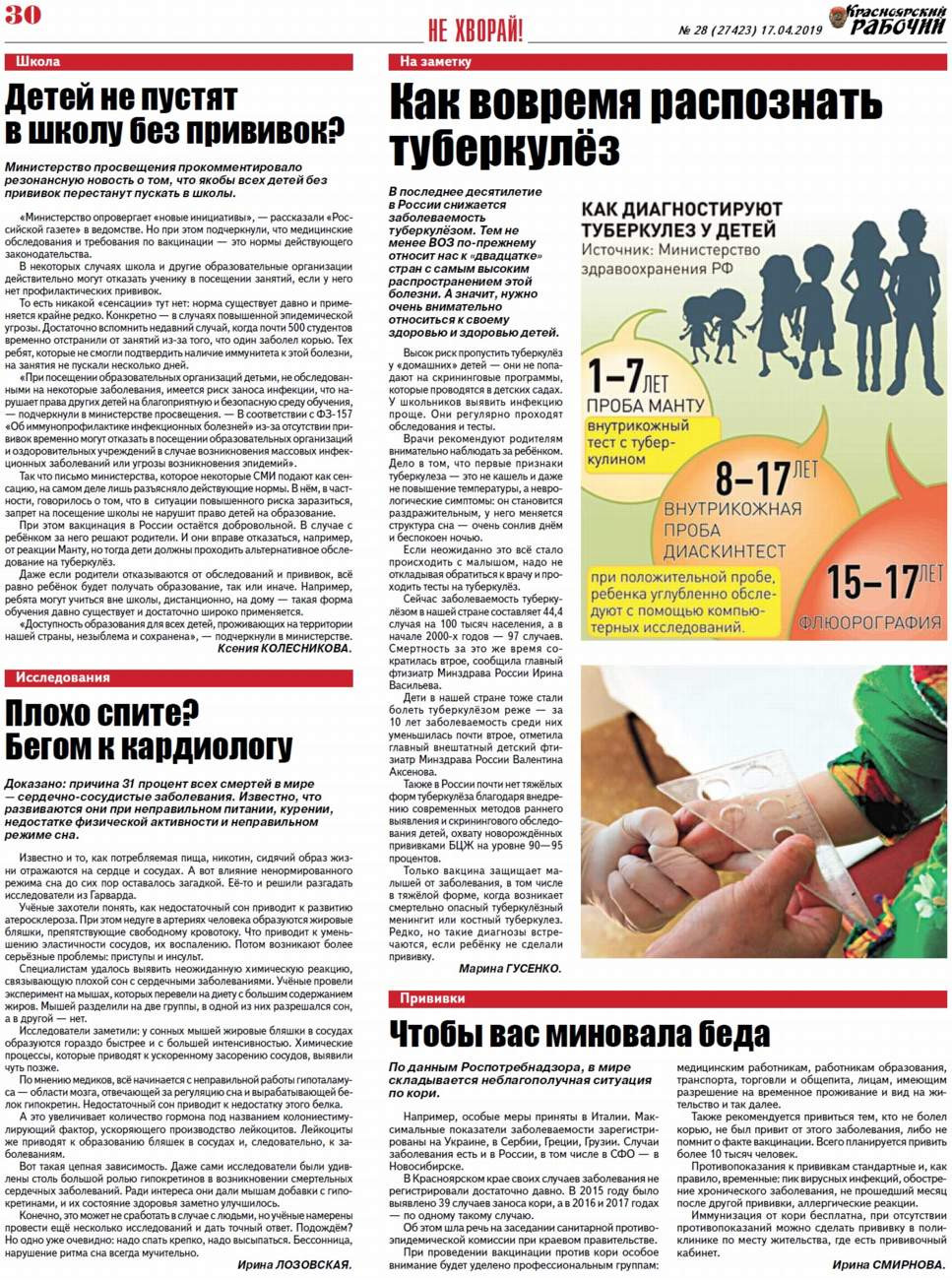 О чём пишет "Красноярский рабочий" в среду, 17 апреля 2019 года