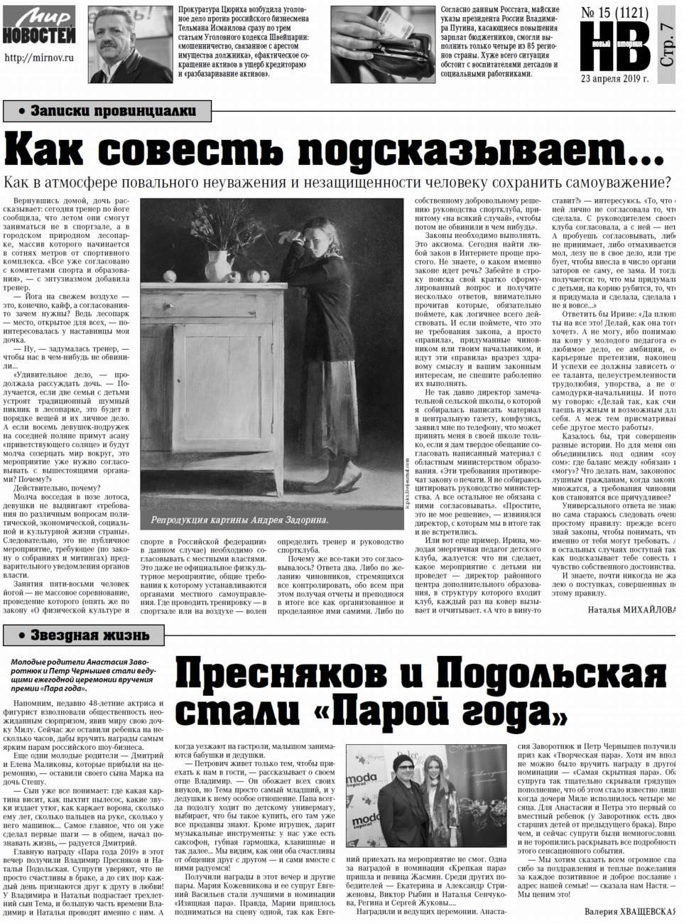 В номере опубликованы также свежий выпуск "Нового вторника", очередные "Заметки каждого дня" писателя Анатолия Зябрева, новости, острые письма читателей, тематическая страница "Телевечер", ТВ-программа и гороскоп на предстоящую неделю, сканворд.