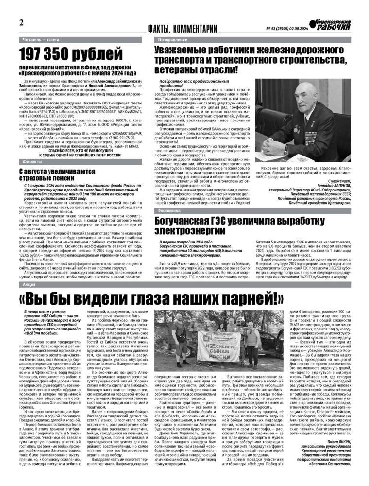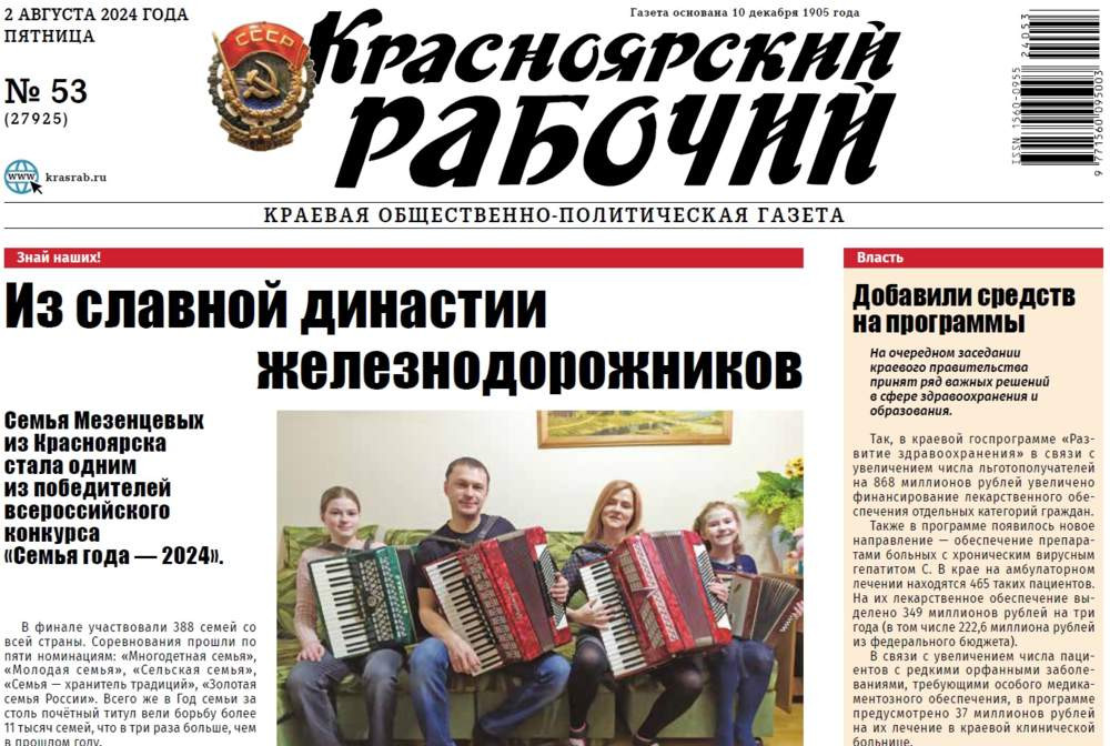Читайте в газете "Красноярский рабочий" в пятницу, 2 августа 2024 года