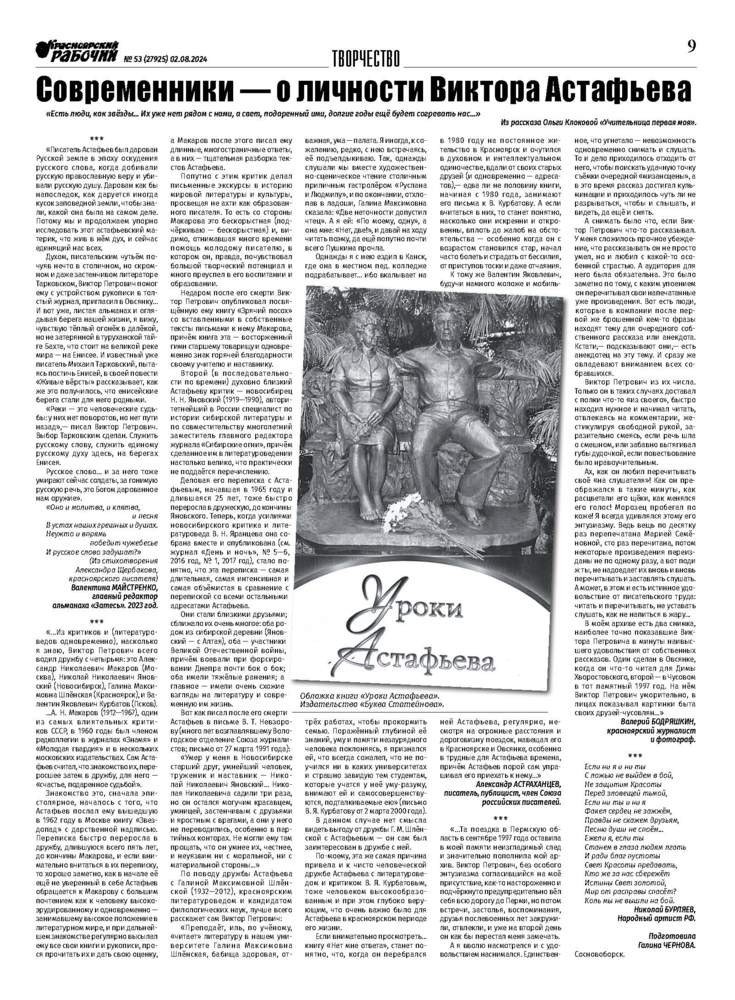 В номере вы также найдёте новости, подборку "Современники - о личности Виктора Астафьева", тематические полосы "Спорт", "Полезно знать", объявления, прогноз погоды на ближайшие дни, анекдоты.