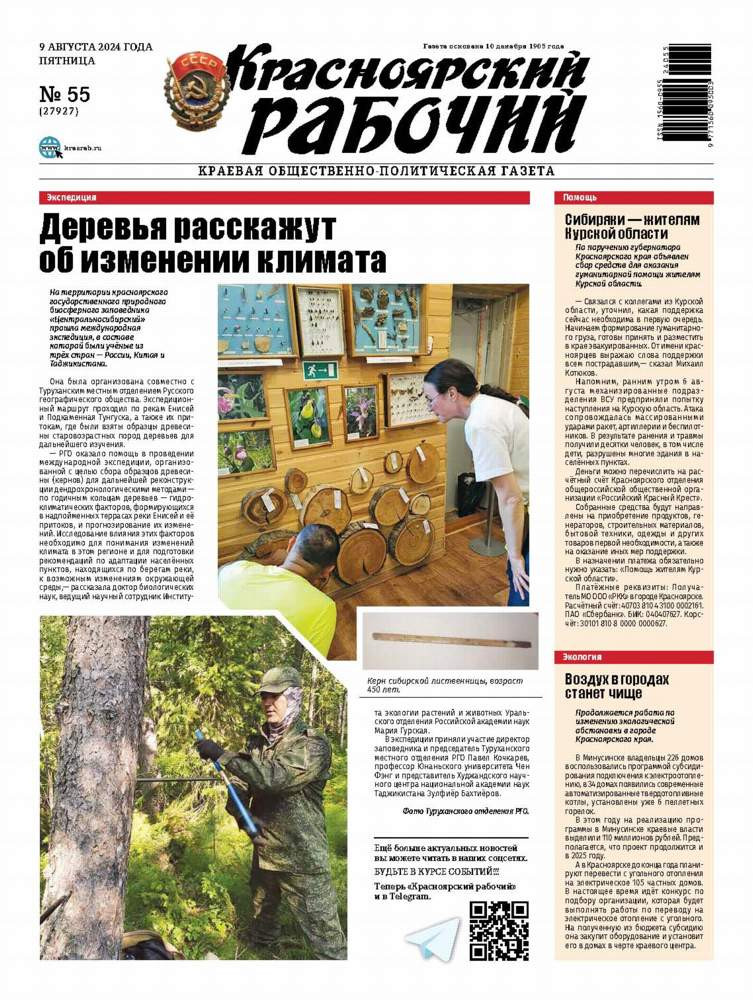 Читайте в газете "Красноярский рабочий" в пятницу, 9 августа 2024 года