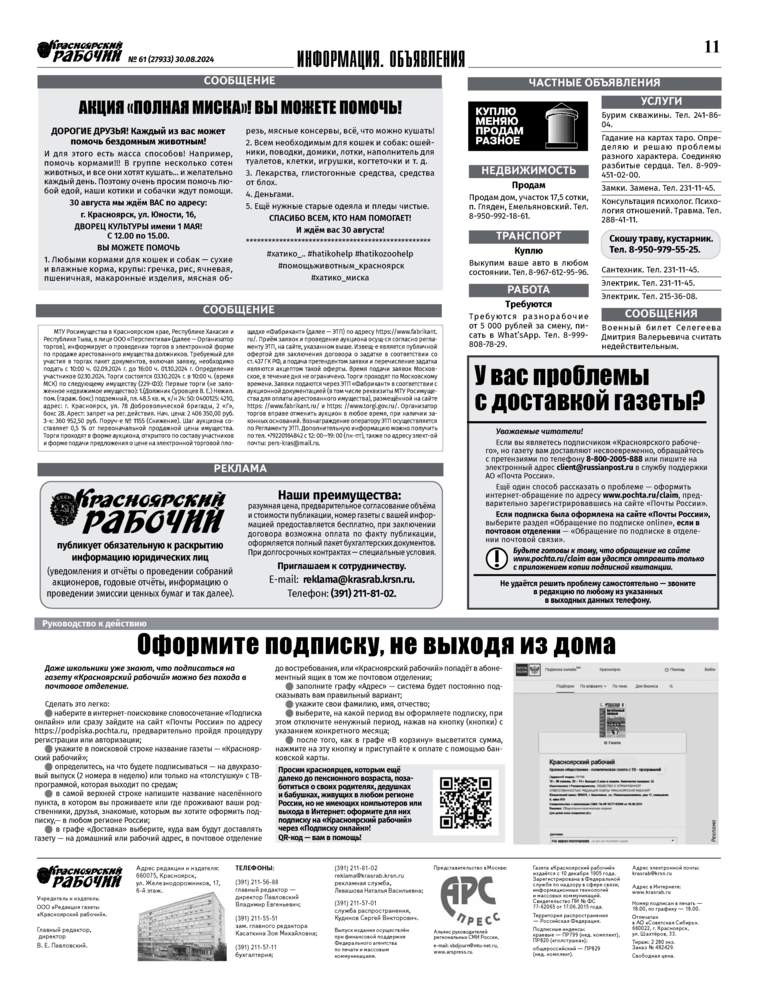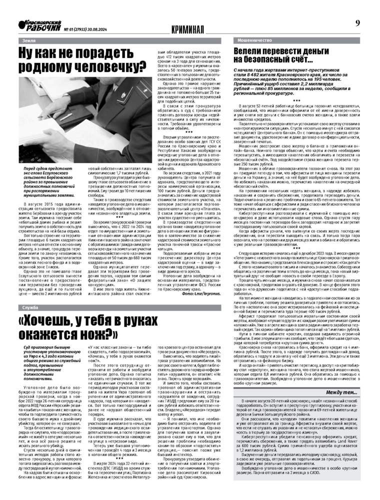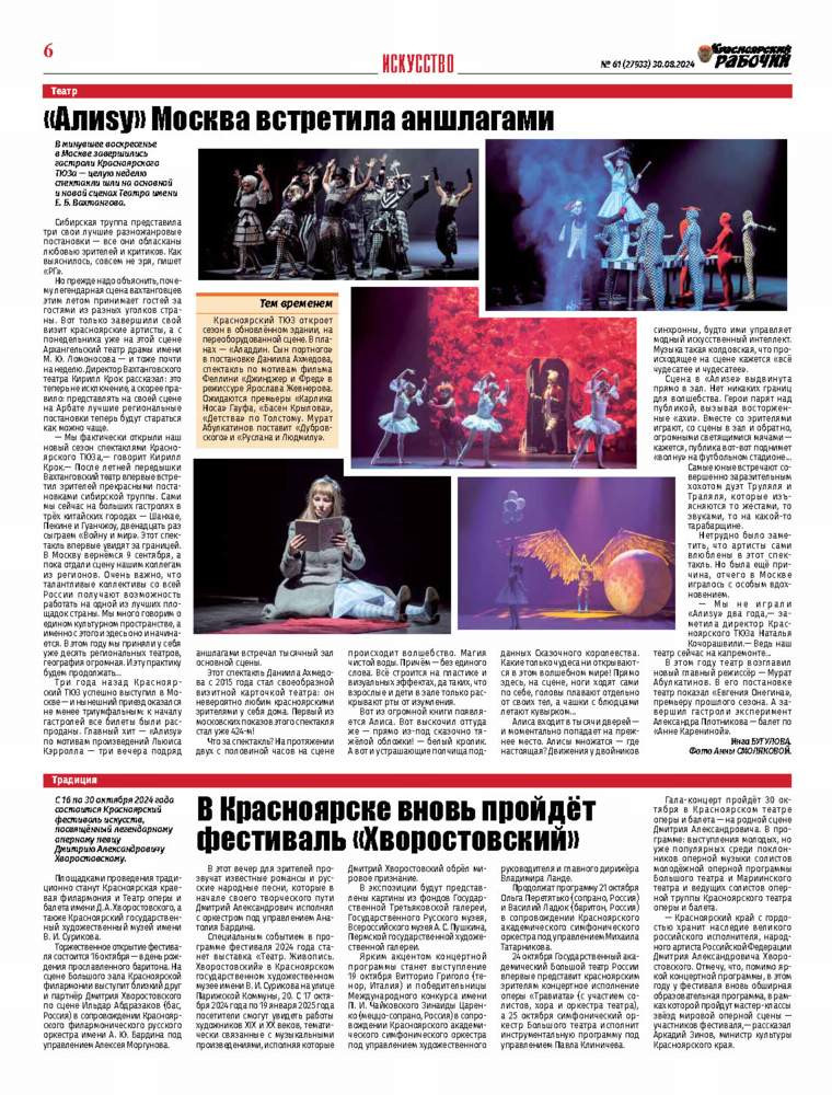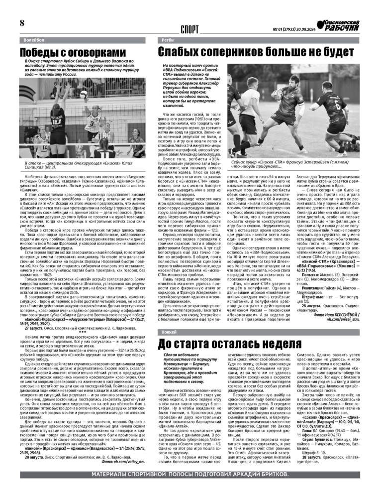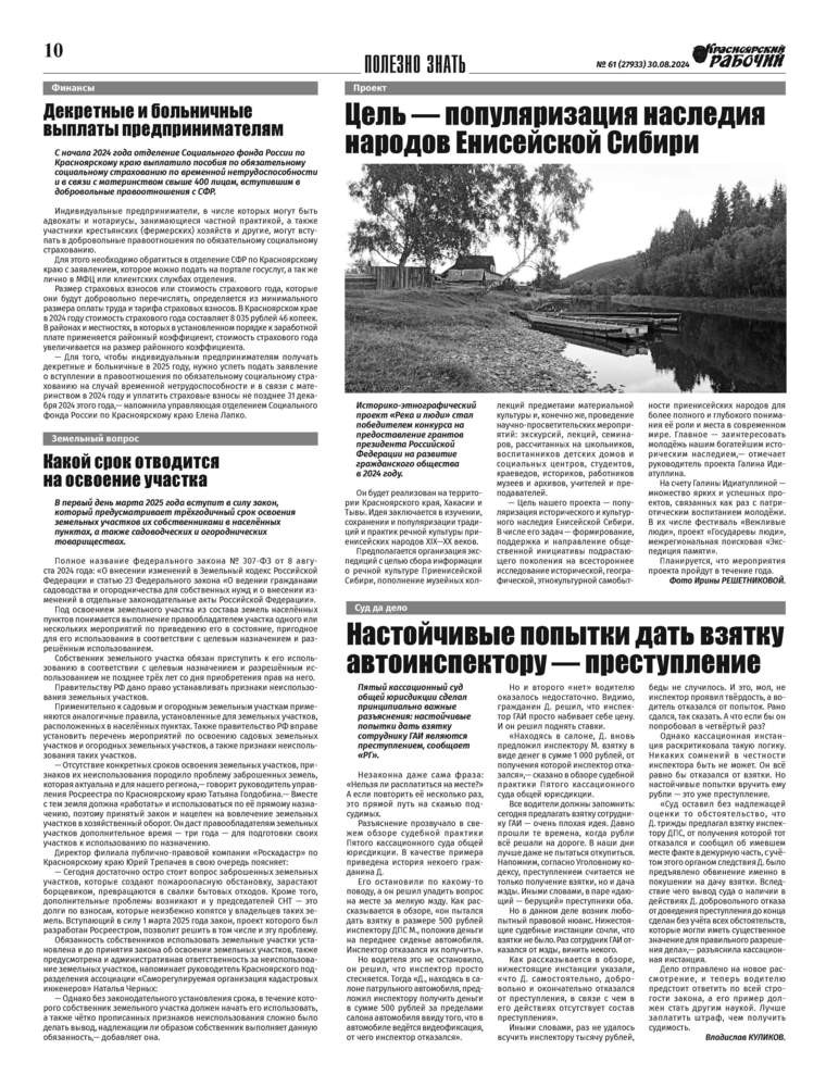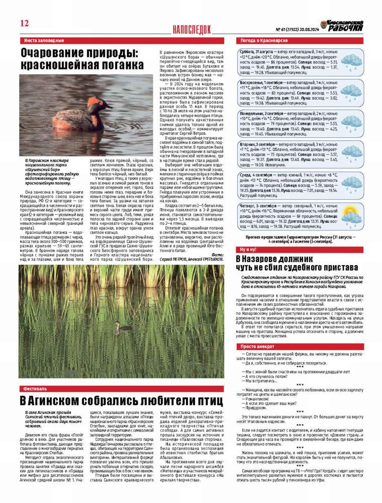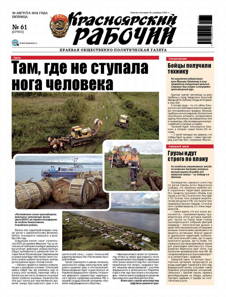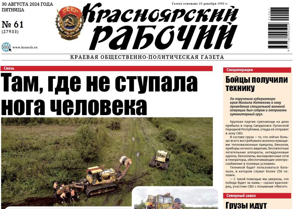 Читайте в газете "Красноярский рабочий" в пятницу, 30 августа 2024 года