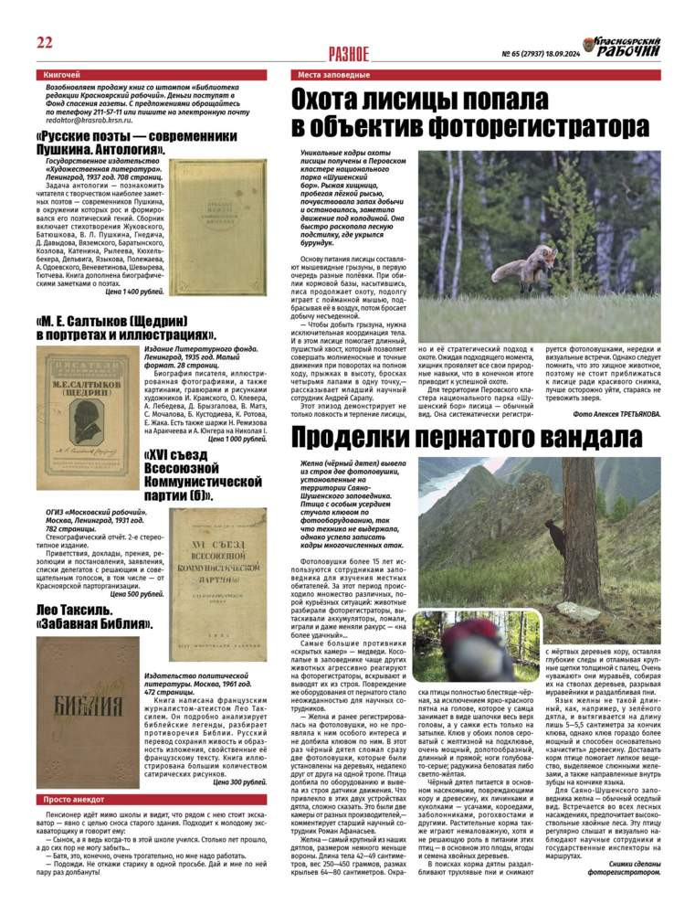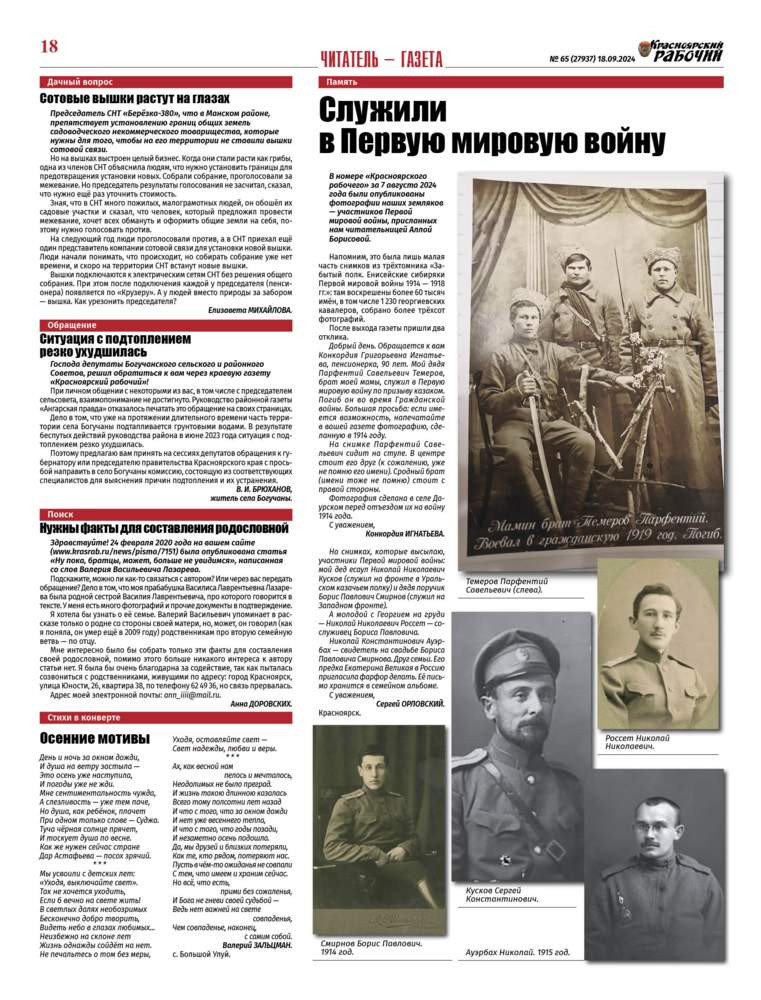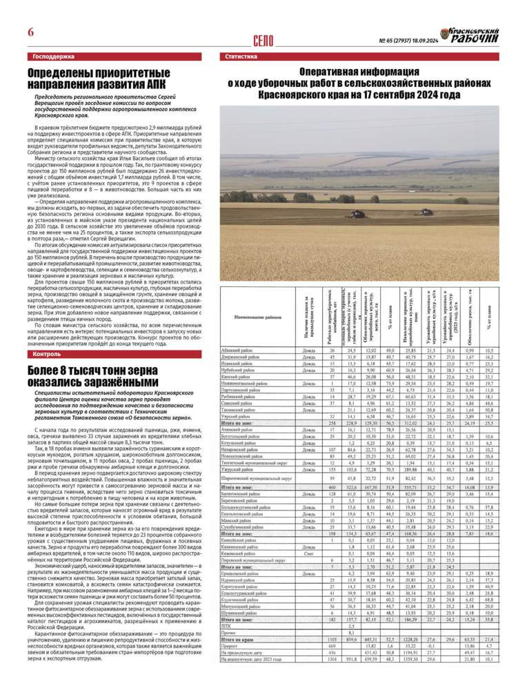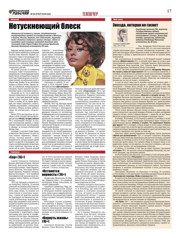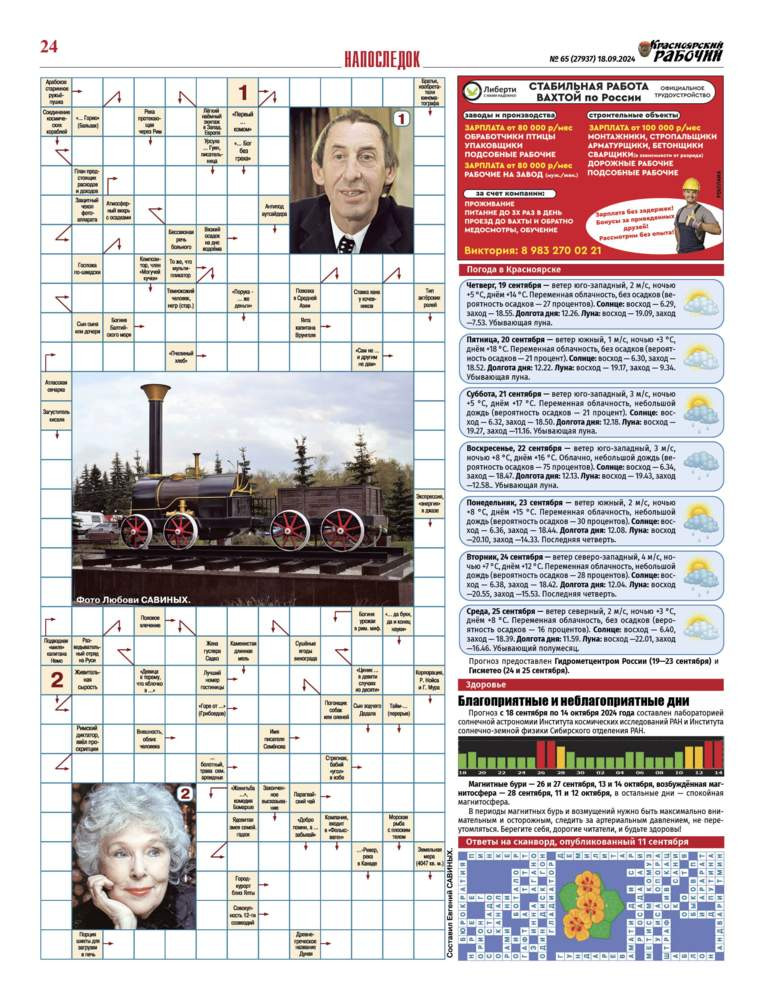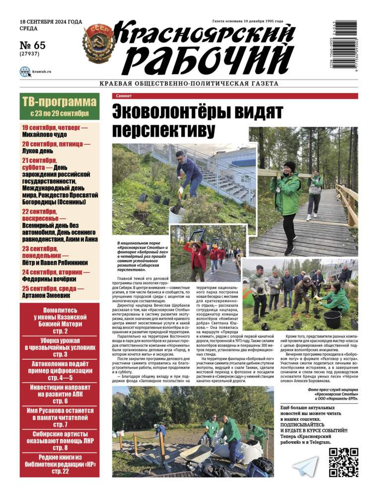 Читайте в газете "Красноярский рабочий" в среду, 18 сентября 2024 года