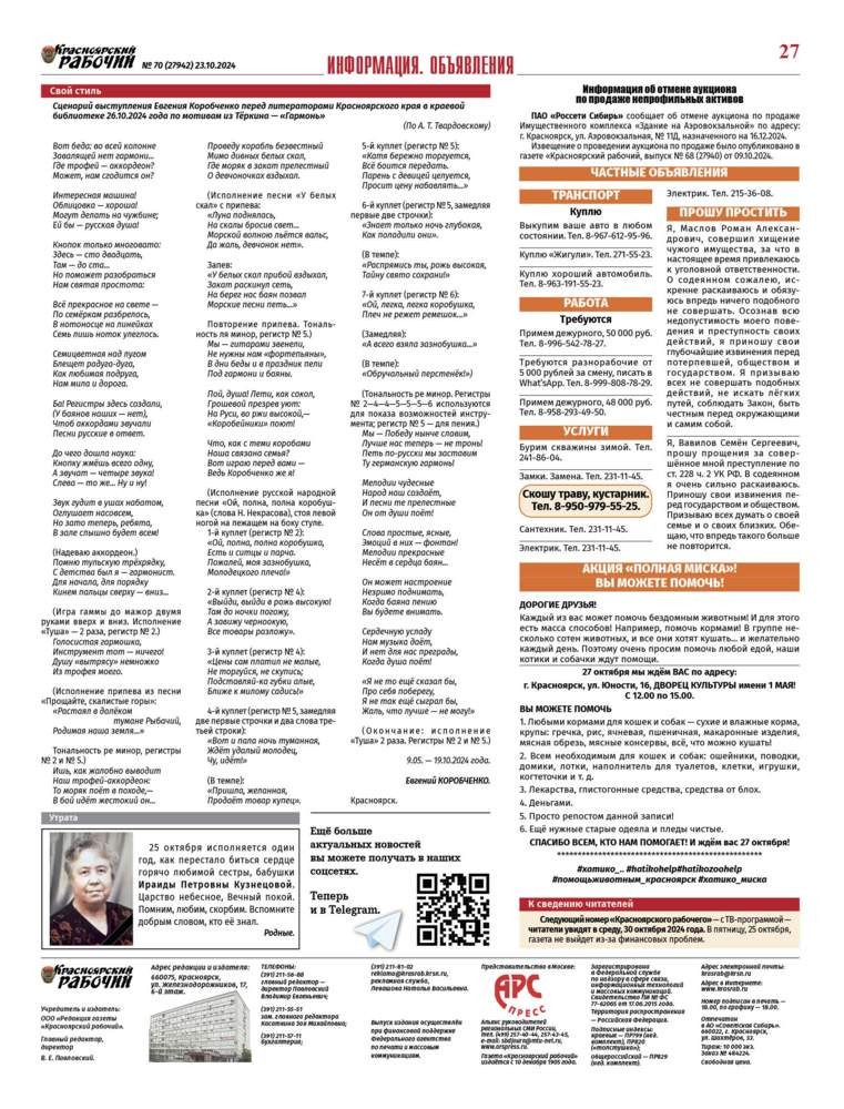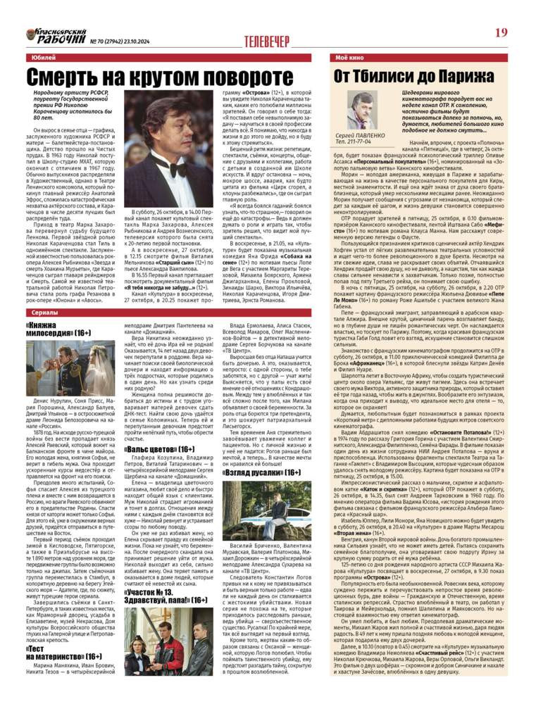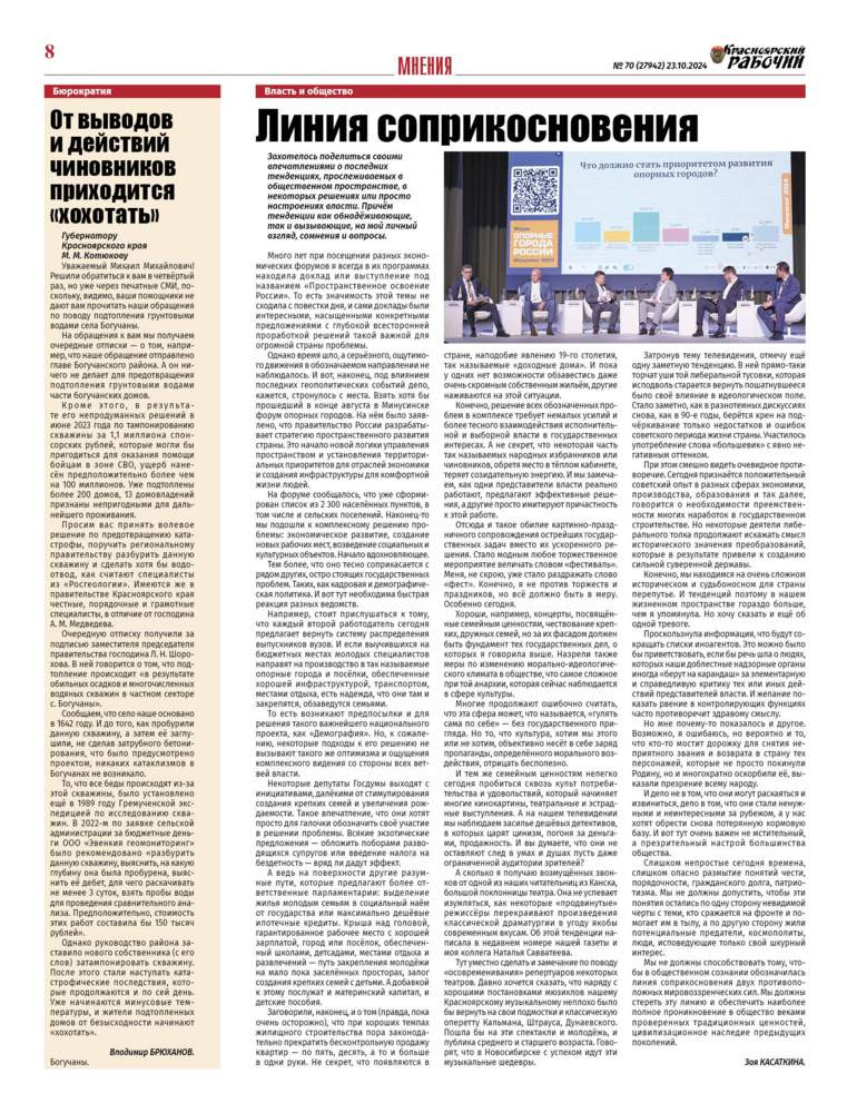 Читайте в газете "Красноярский рабочий" в среду, 23 октября 2024 года
