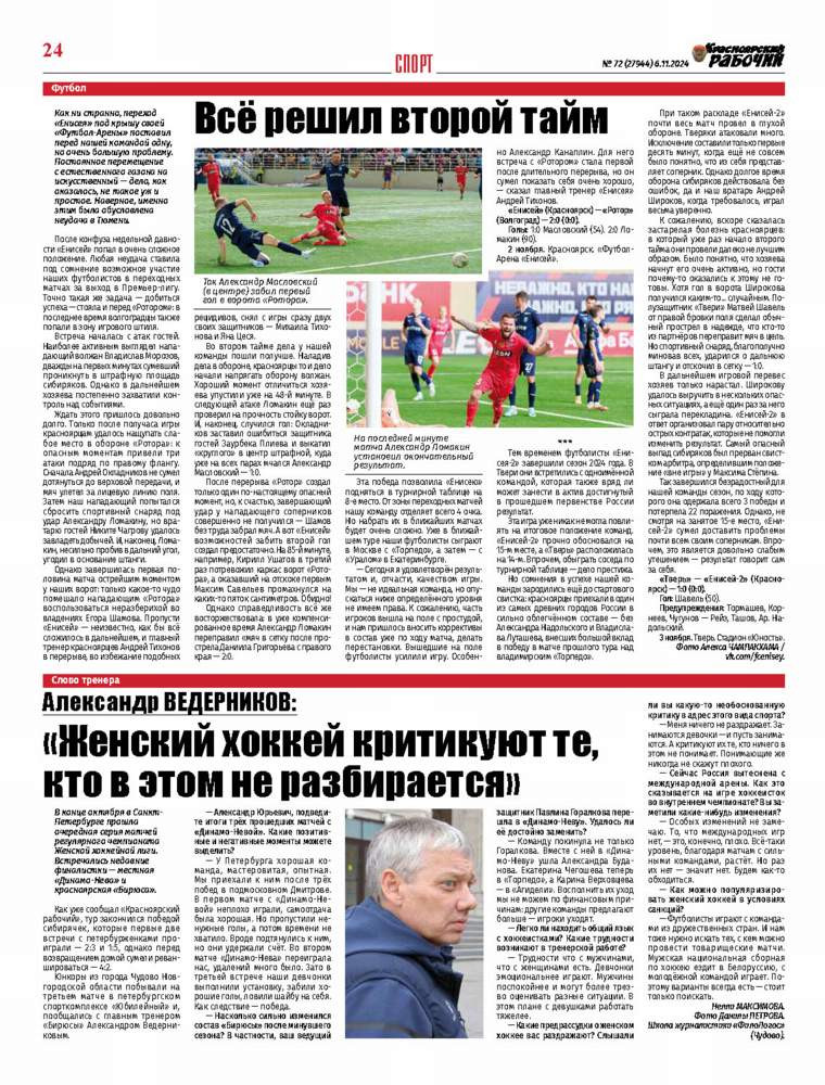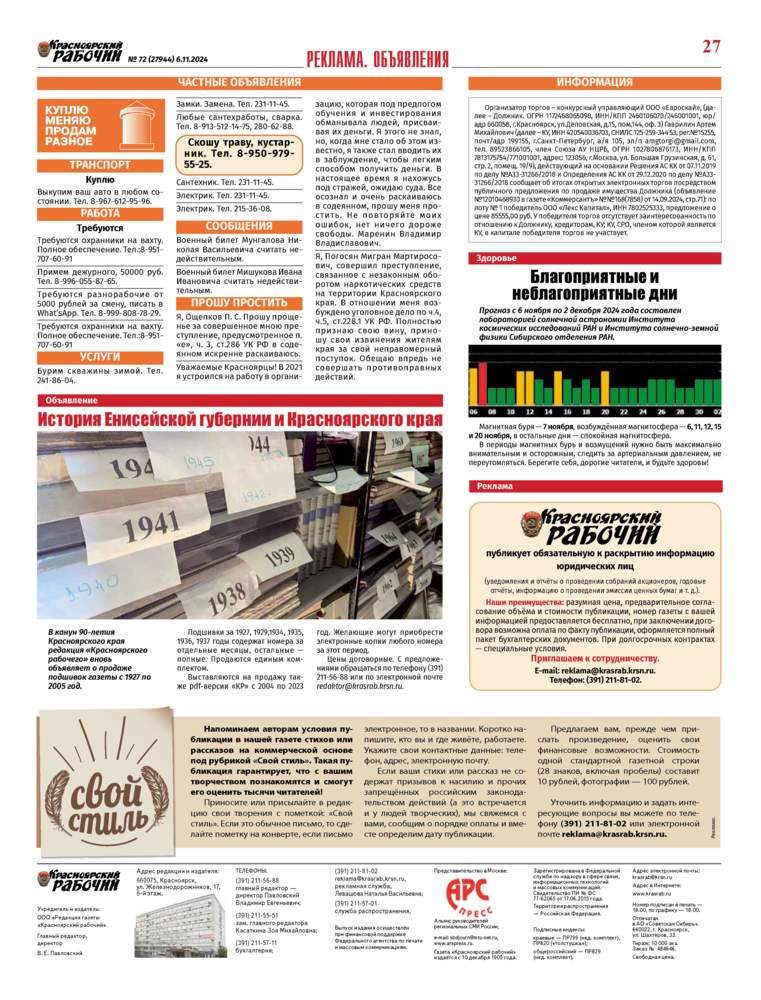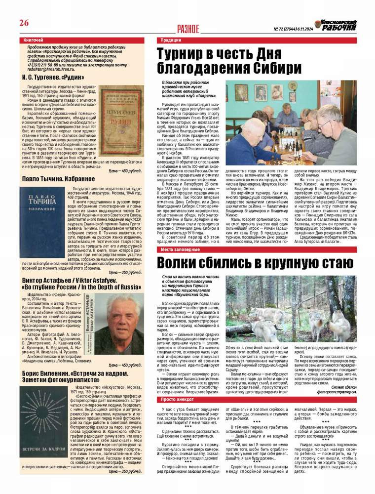 Читайте в газете "Красноярский рабочий" в среду, 6 ноября 2024 года