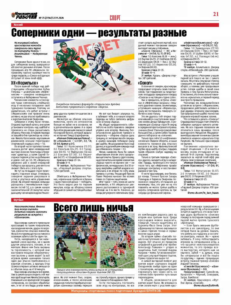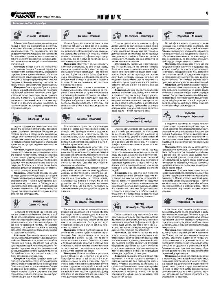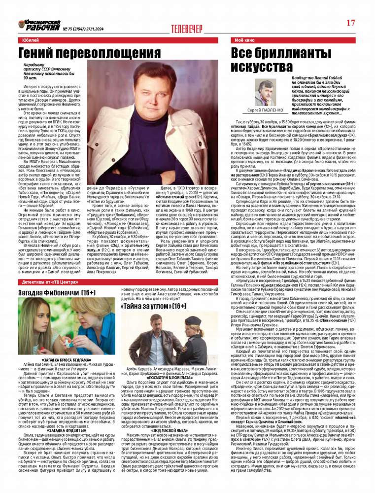Читайте в газете "Красноярский рабочий" в среду, 27 ноября 2024 года