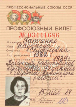 В архиве редакции газеты "Красноярский рабочий" сохранились профсоюзные билеты сотрудников, выданные в основном в 1984 - 86 года.