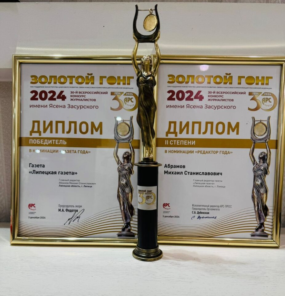 Всероссийский конкурс журналистов имени Ясена Засурского "Золотой Гонг – 2024" подвёл итоги в 30-й раз. Награждены лучшие представители федеральных и региональных СМИ страны, озвучены имена победителей в специальных номинациях, произнесено много добрых слов в адрес организатора конкурса – Альянса руководителей региональных СМИ России (АРС-ПРЕСС), объединяющего около 200 изданий региональных СМИ общим тиражом более двух миллионов экземпляров, и его партнёров.