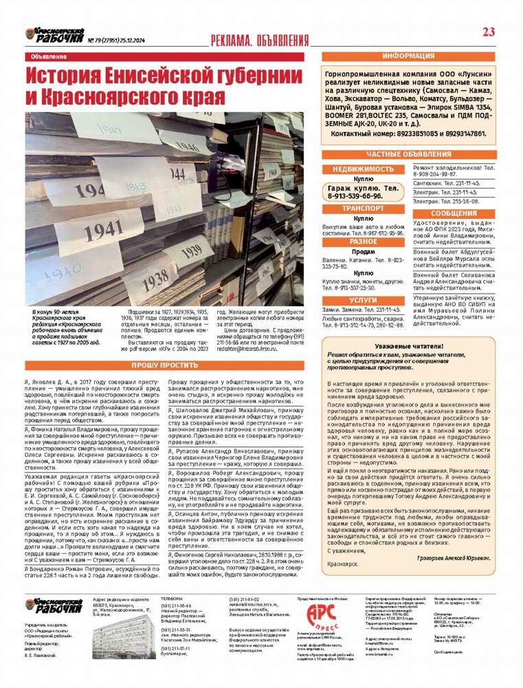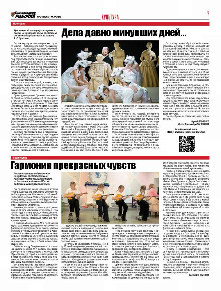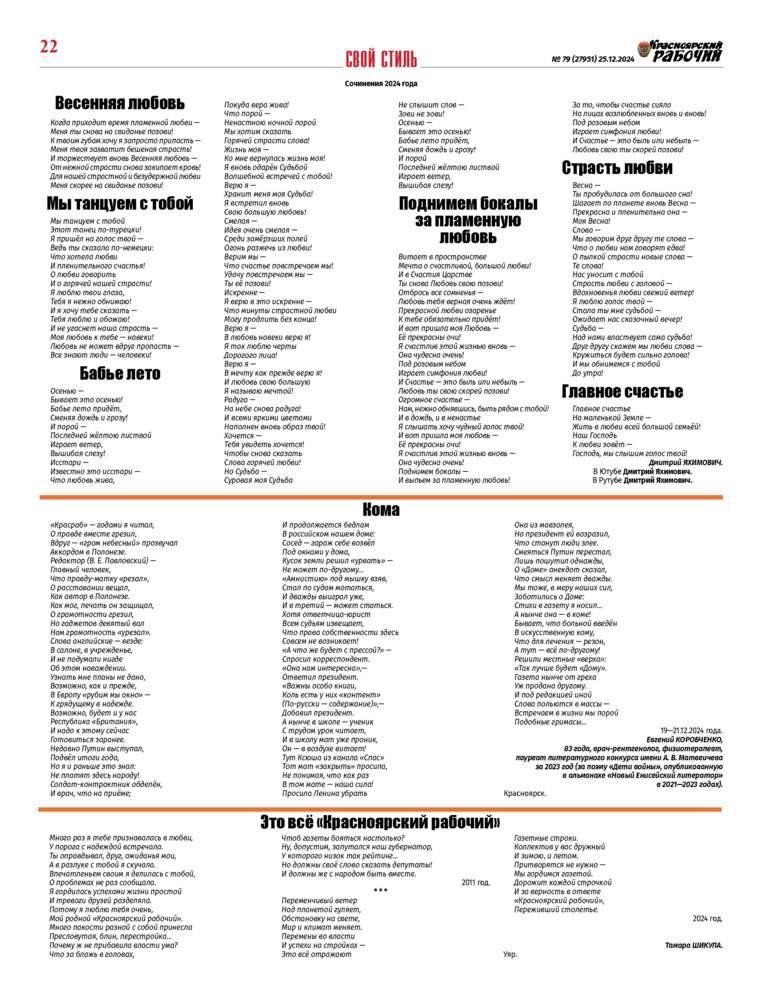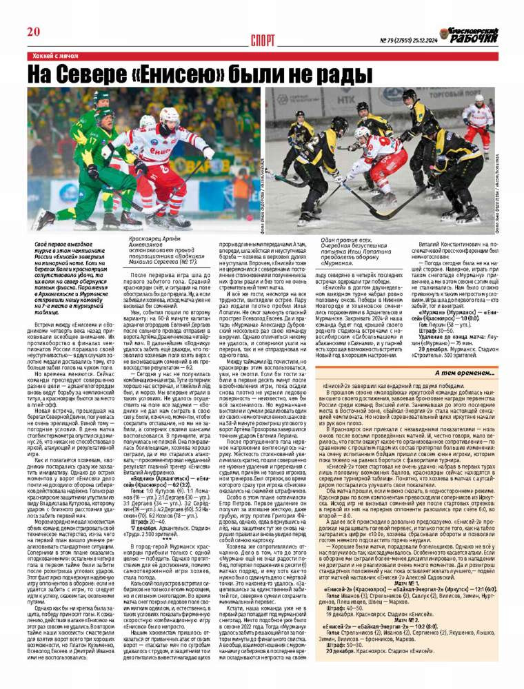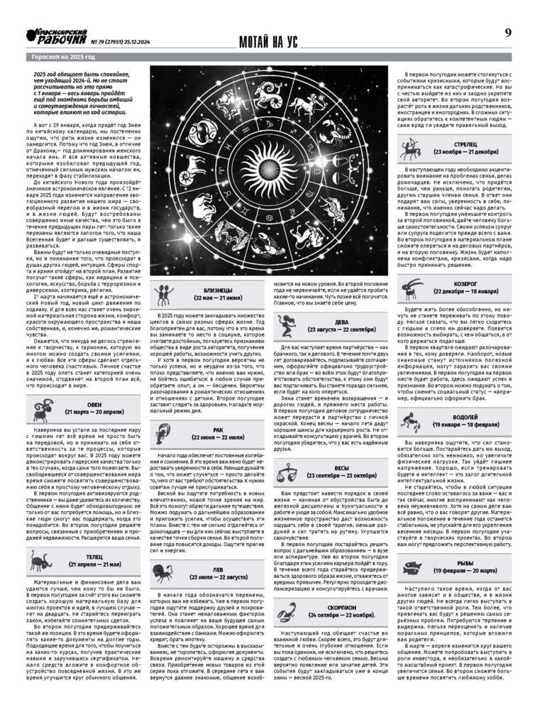 Читайте в газете "Красноярский рабочий" в среду, 25 декабря 2024 года
