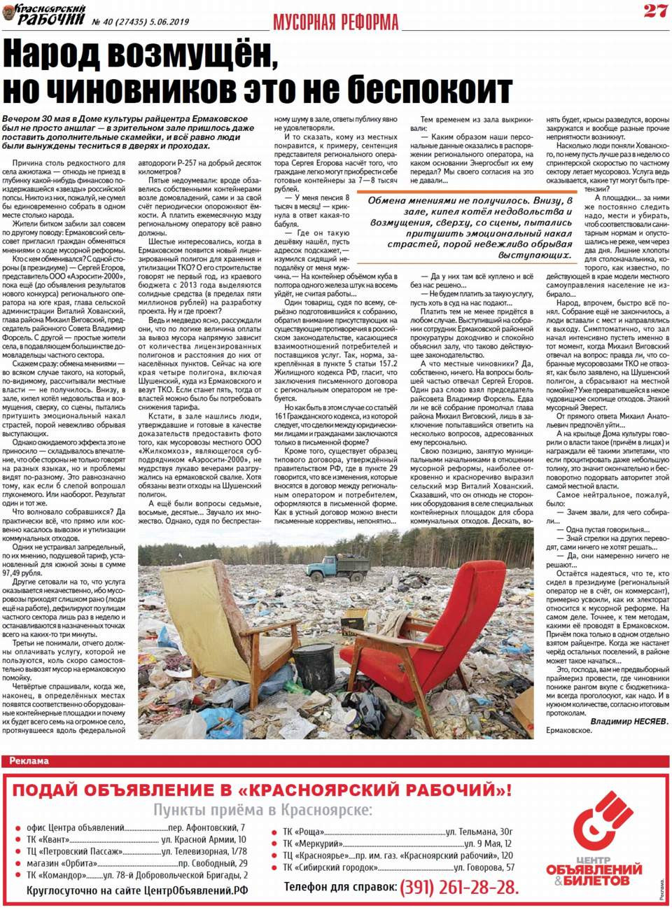 О чём пишет "Красноярский рабочий" в среду, 5 июня 2019 года