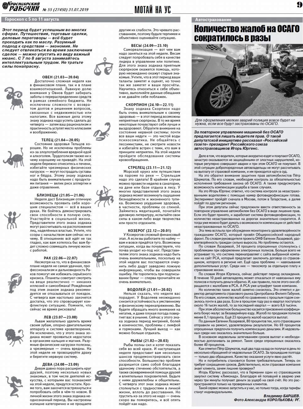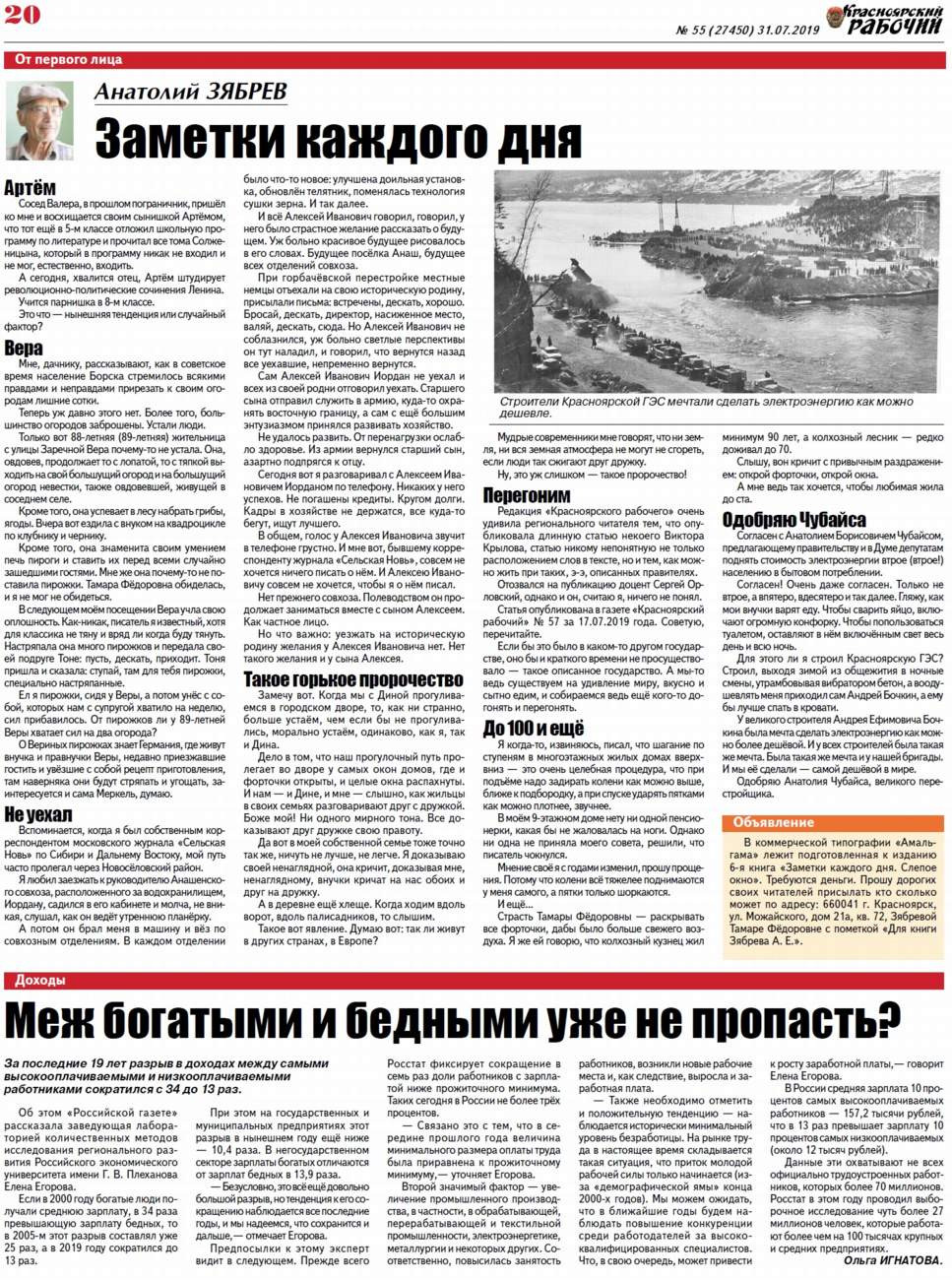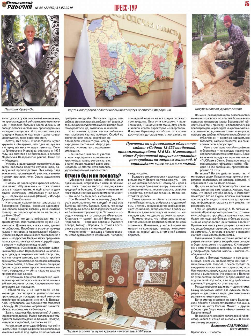 О чём пишет "Красноярский рабочий" в среду, 31 июля 2019 года