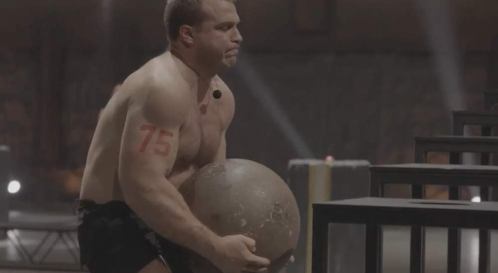 В новой серии атлетам в своих командах предстояло пройти полосу препятствий, одна из станций которой состояла из 6 тяжёлых снарядов весом 90, 80, 70, 60, 50 и 40 килограммов. Каждый из шаров необходимо было поднять на определённую высоту и передать своему напарнику, а потом сделать то же самое, но в обратном порядке.
