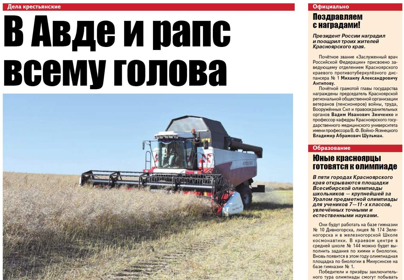 О чём пишет «Красноярский рабочий» в пятницу, 27 сентября 2019 года