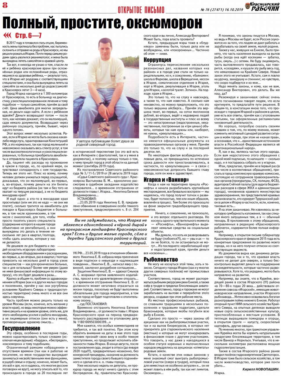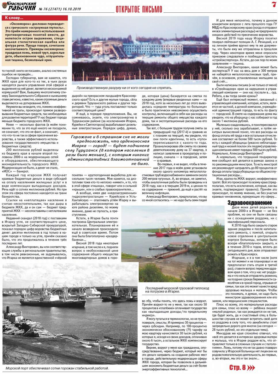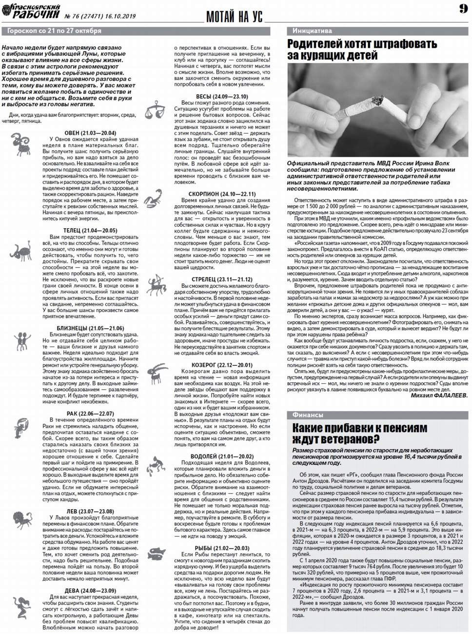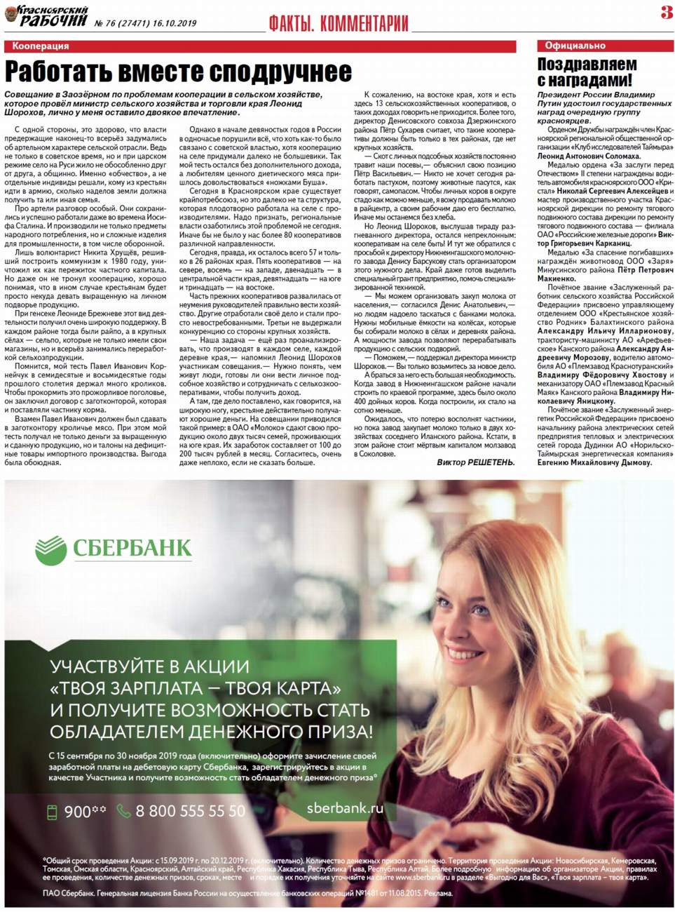 О чём пишет "Красноярский рабочий" в среду, 16 октября 2019 года
