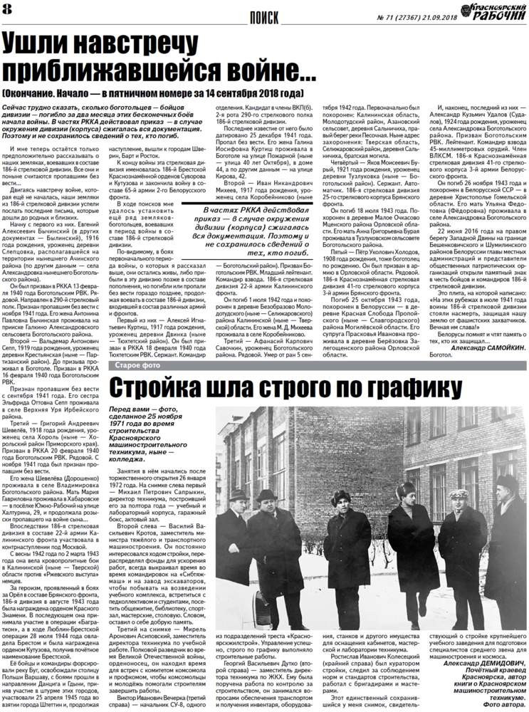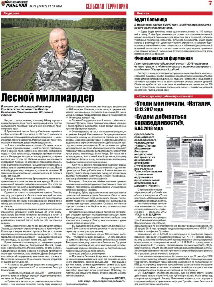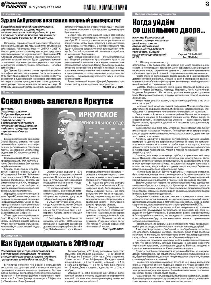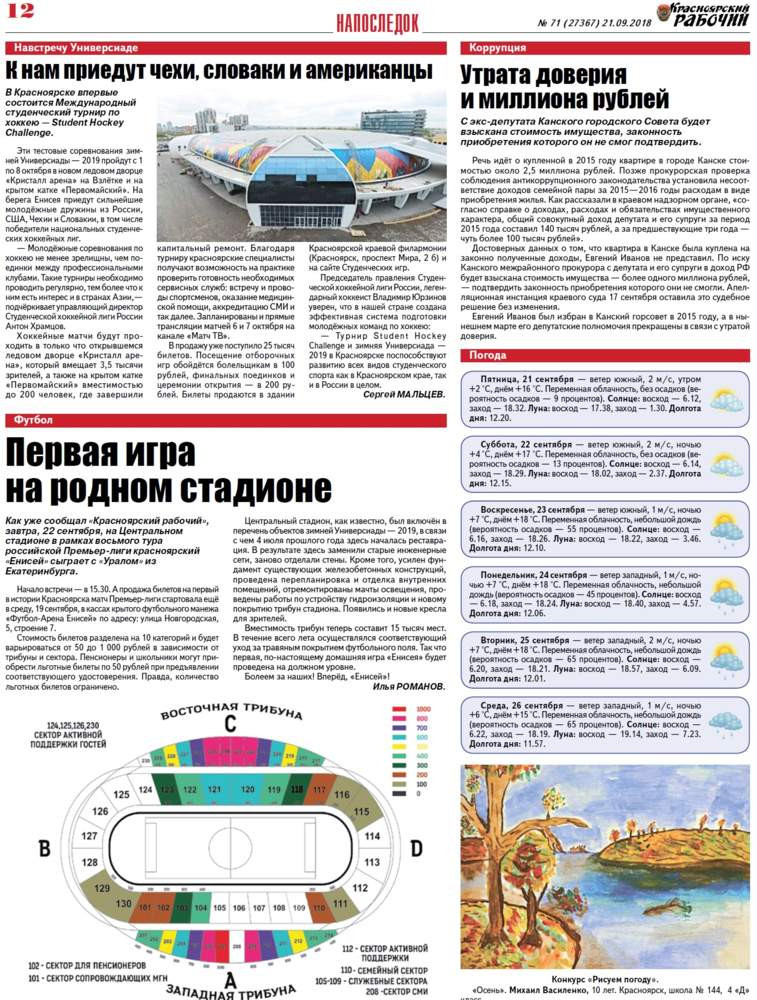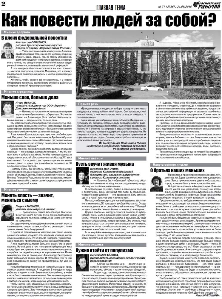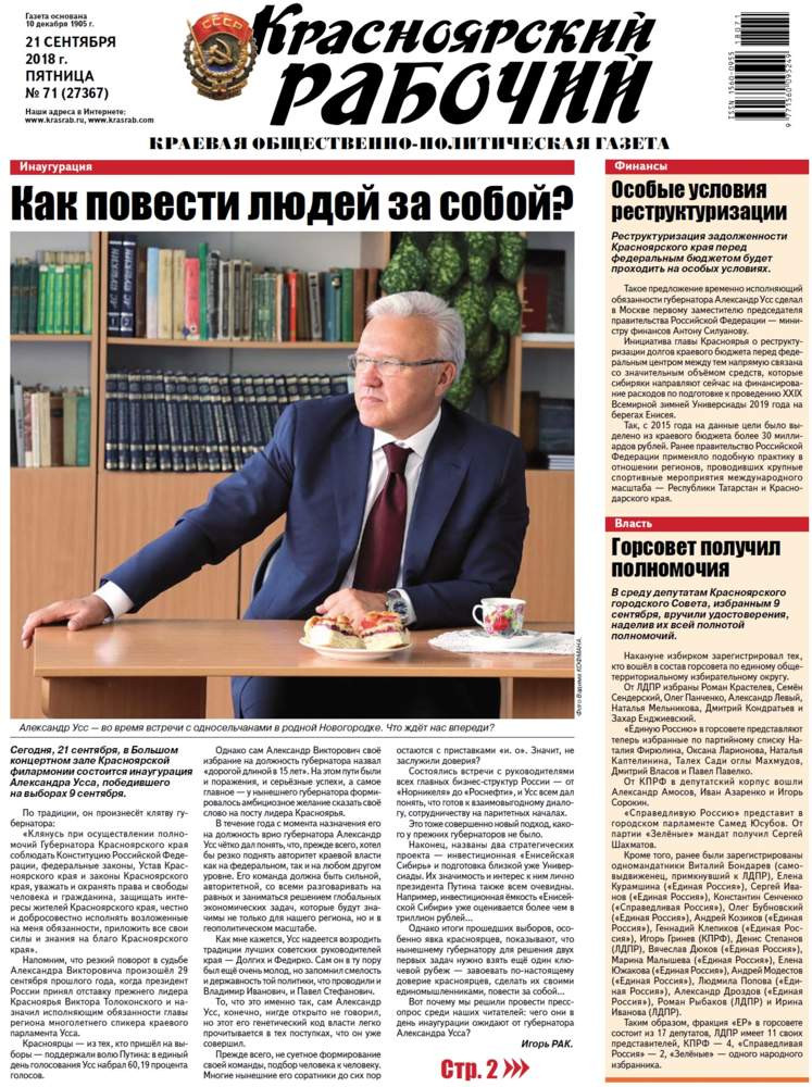 О чём пишет «Красноярский рабочий» в пятницу, 21 сентября 2018 года