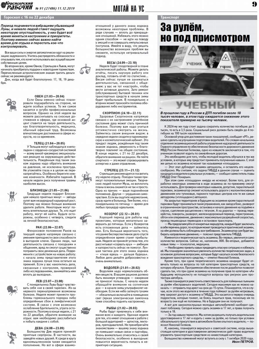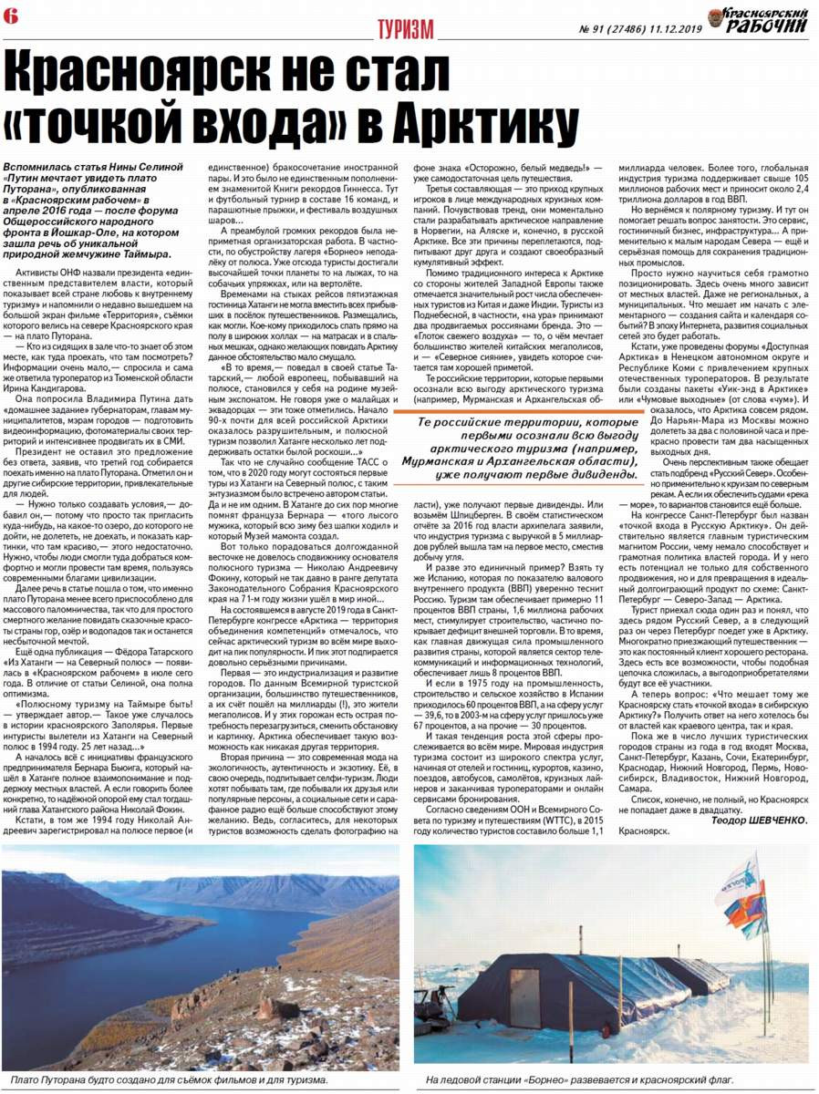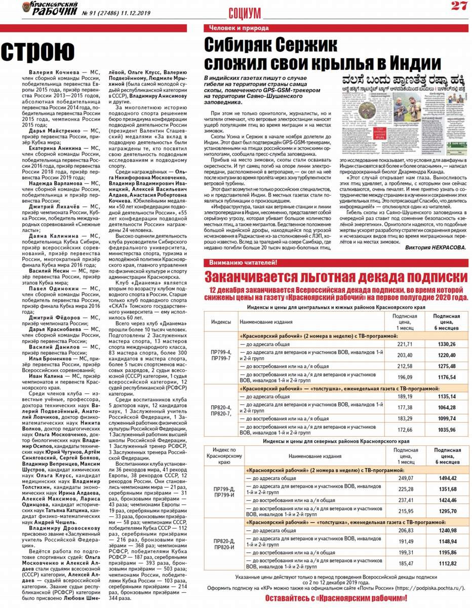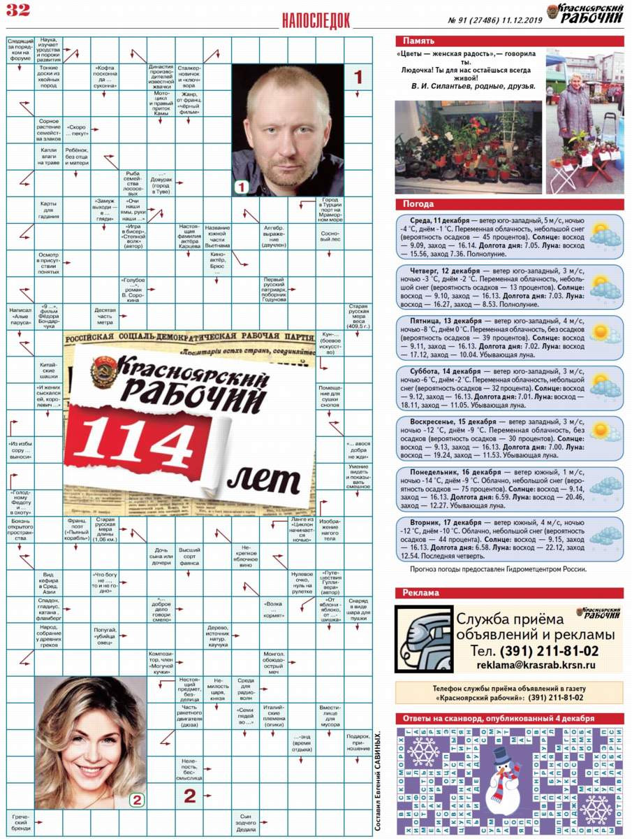 О чём пишет "Красноярский рабочий" в среду, 11 декабря 2019 года