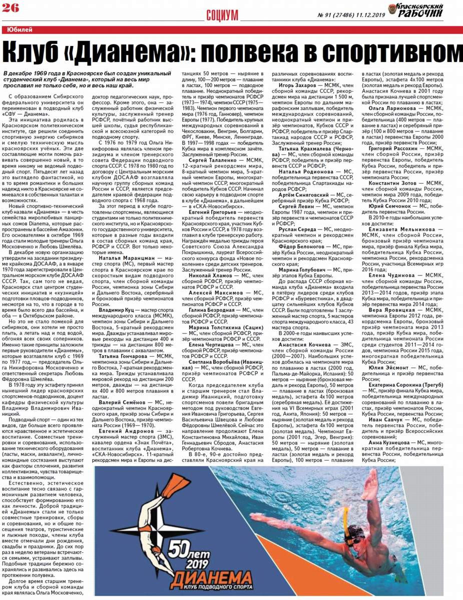 С образованием Сибирского федерального университета он переименован в подводный клуб "СФУ - Дианема". "КР" знакомит читателями со спортсменами - гордостью клуба.