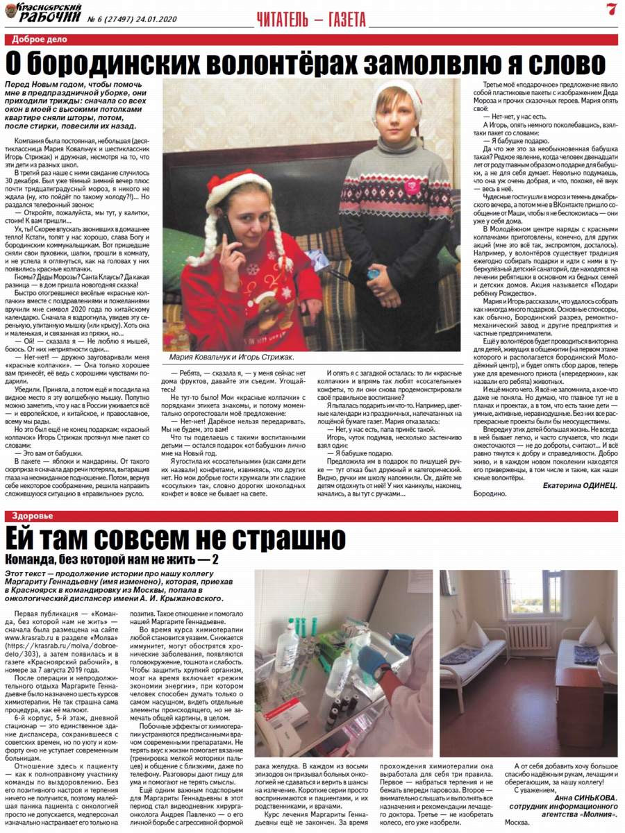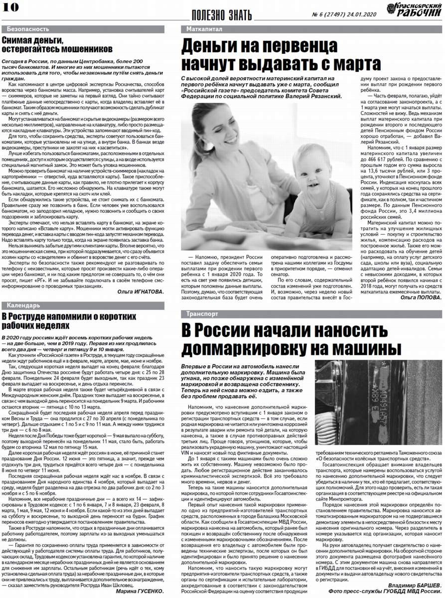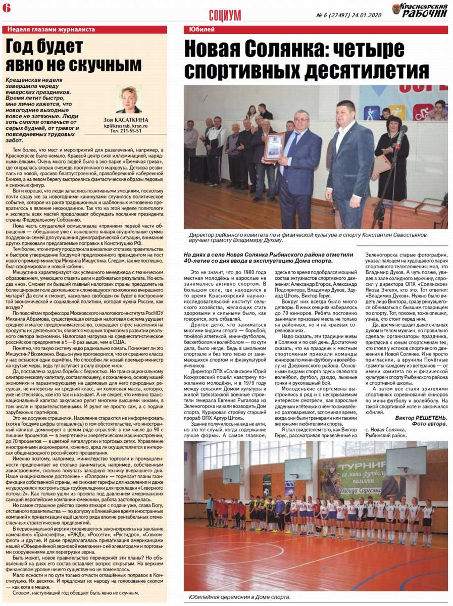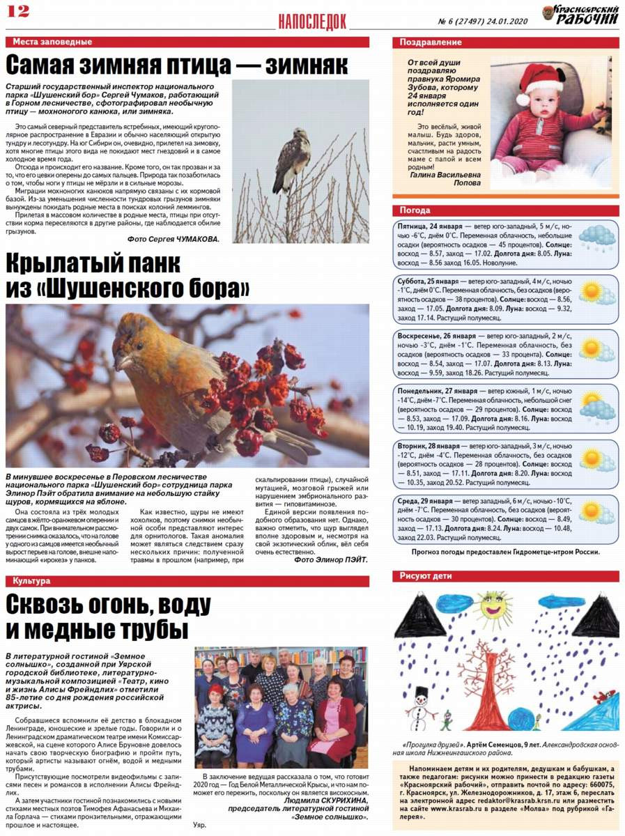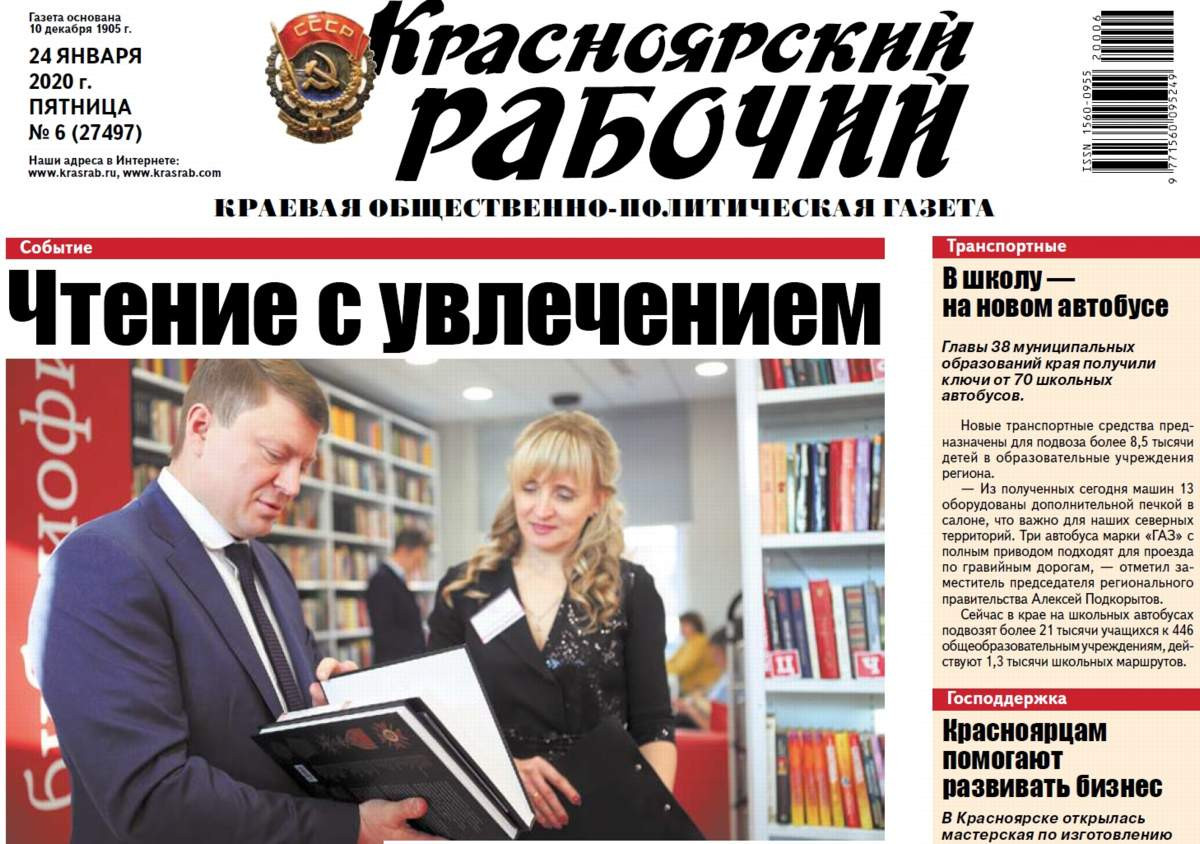 О чём пишет "Красноярский рабочий" в пятницу, 24 января 2020 года