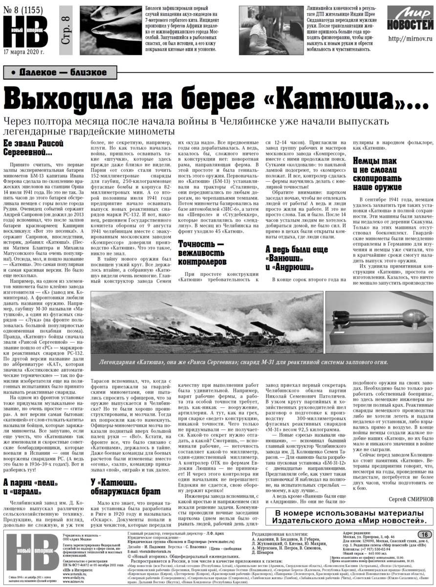 В номере читайте также газету в газете "Новый вторник", новости, подборку фотографий фронтовиков под рубрикой "Лица Победы, очередные "Заметки каждого дня" писателя Анатолия Зябрева, письма читателей, материалы тематических страниц "Телевечер" и "Полезно знать", программу ТВ и гороскоп на предстоящую неделю, прогноз погоды, объявления. Для любителей головоломок - большой сканворд.