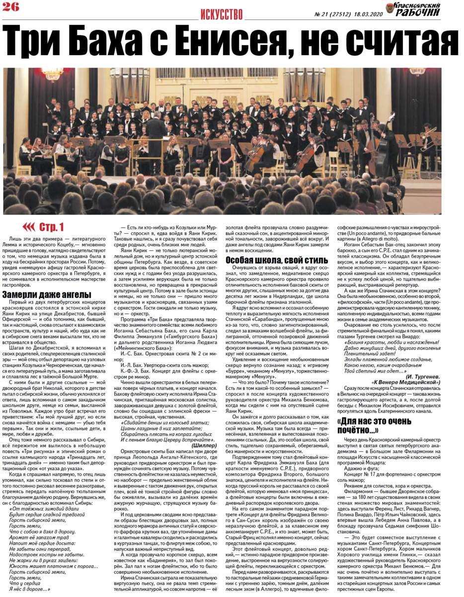 О чём пишет "Красноярский рабочий" в среду, 18 марта 2020 года