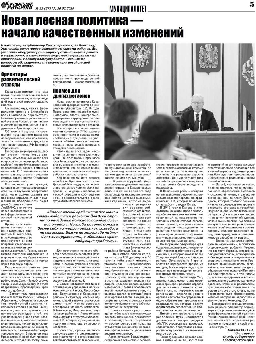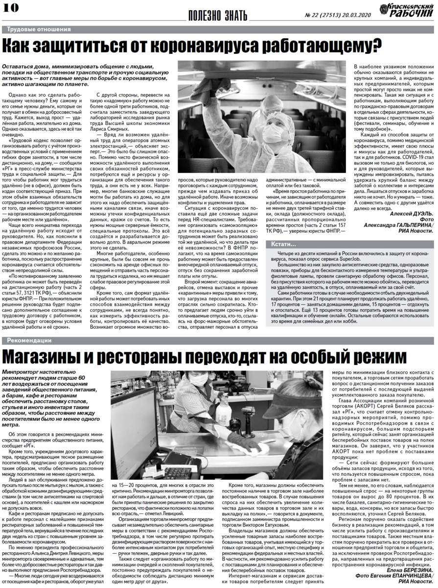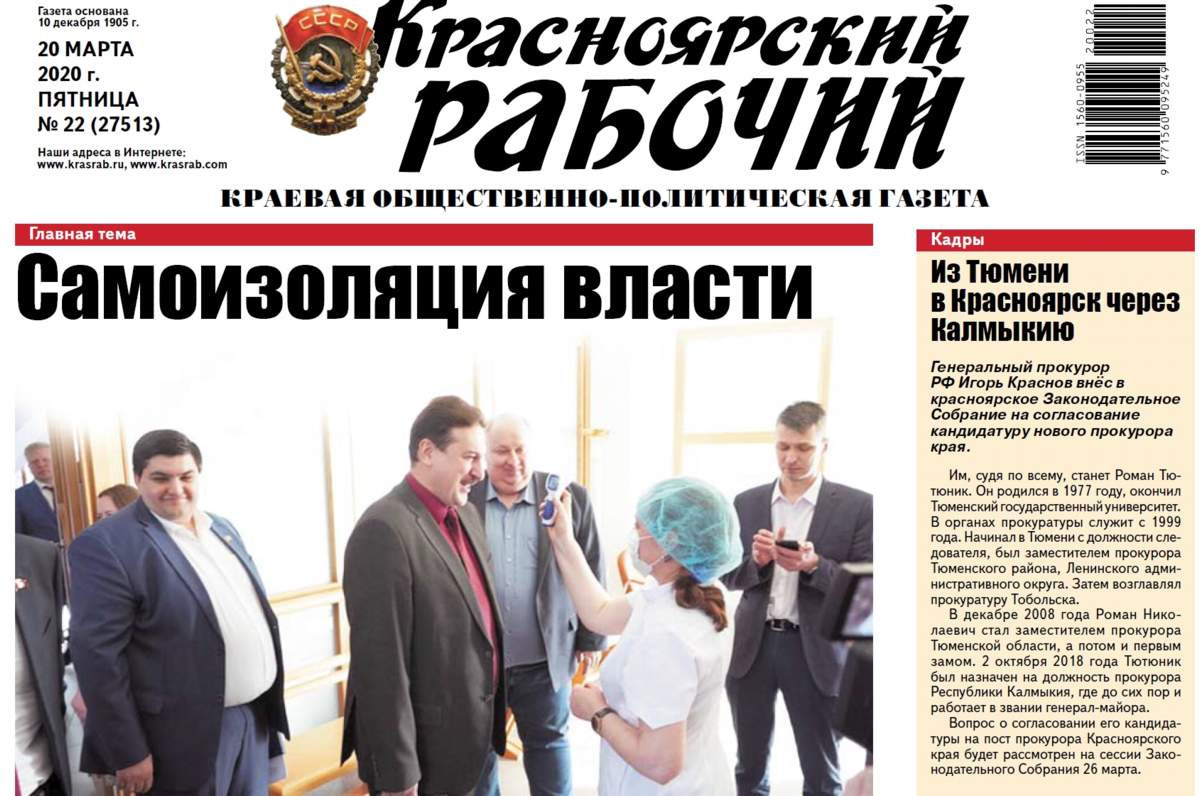О чём пишет "Красноярский рабочий" в пятницу, 20 марта 2020 года