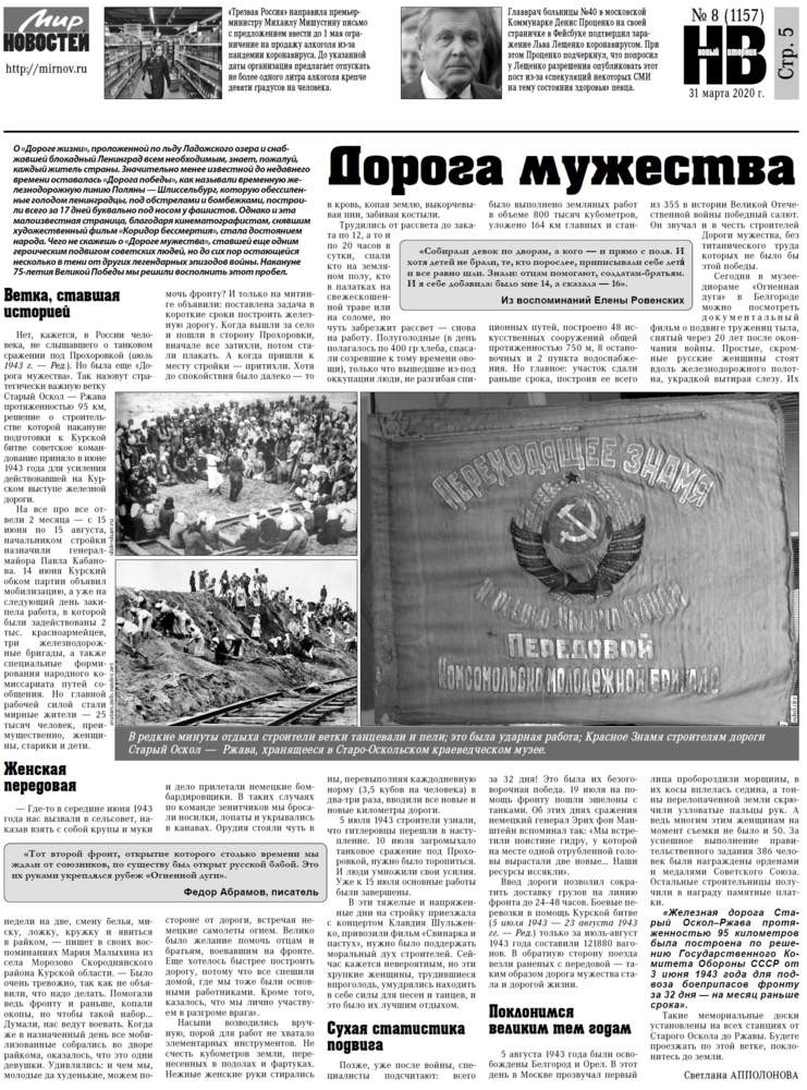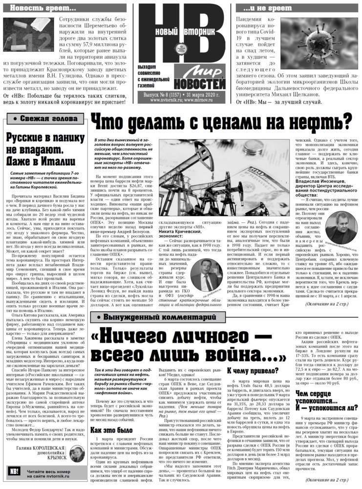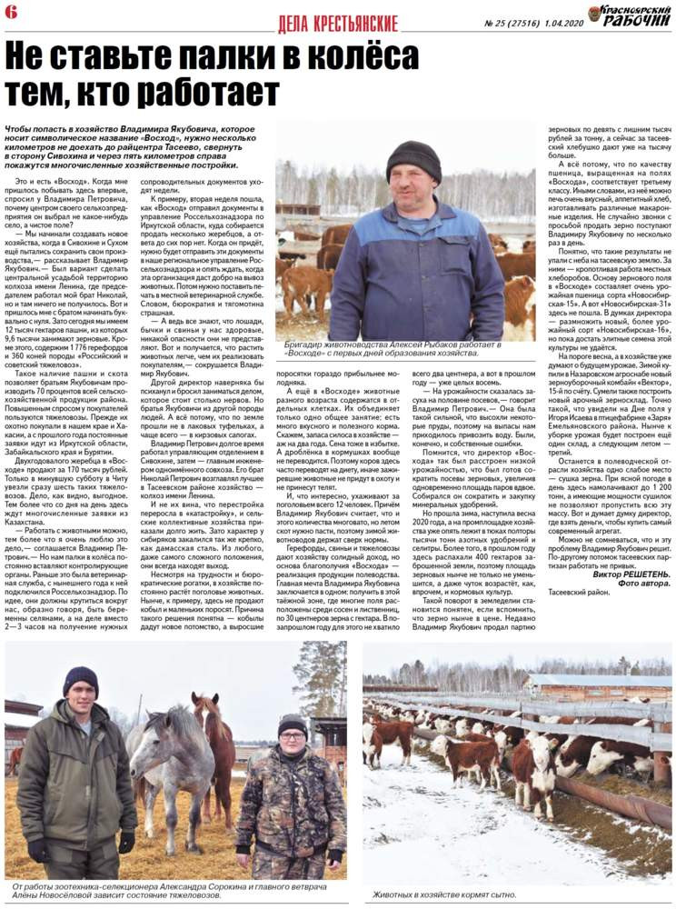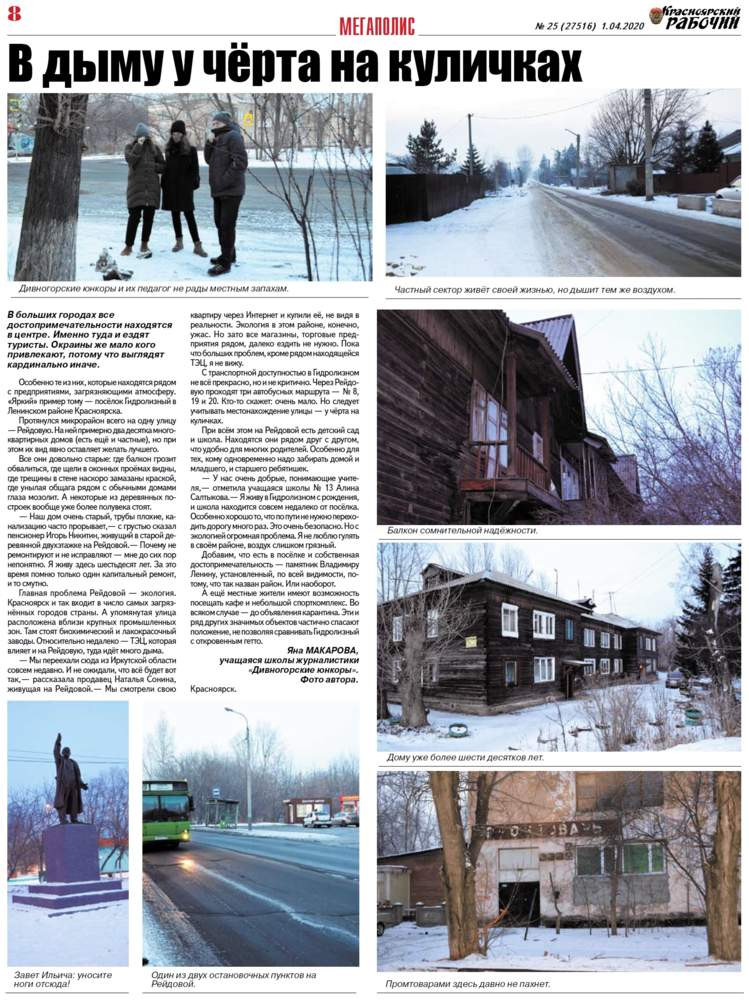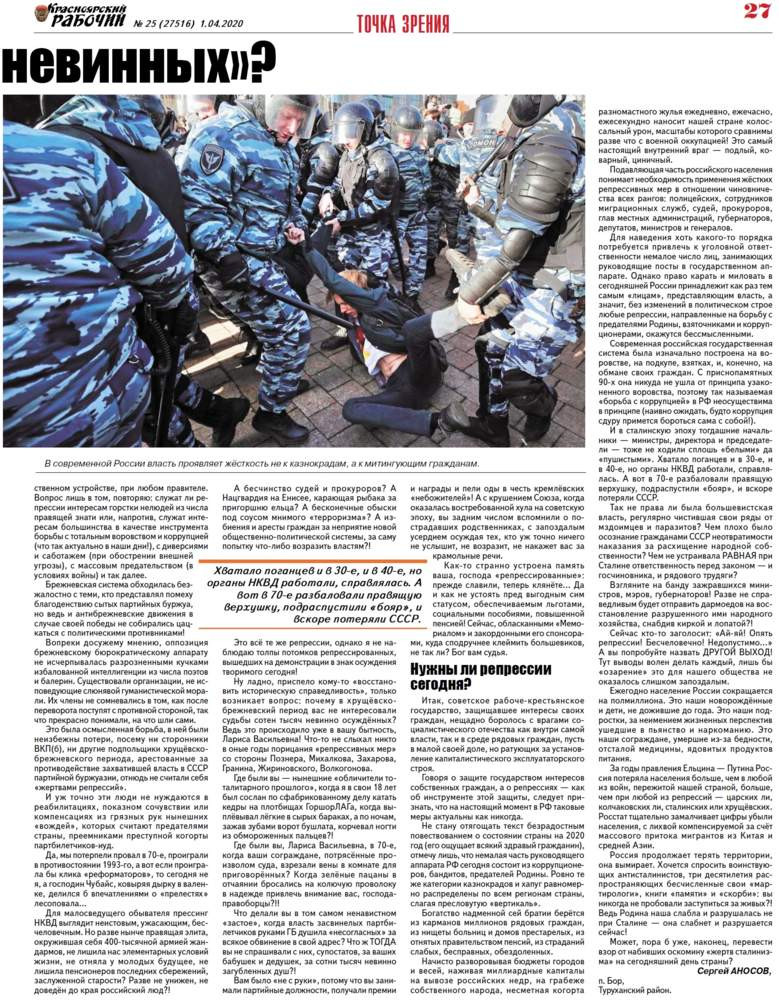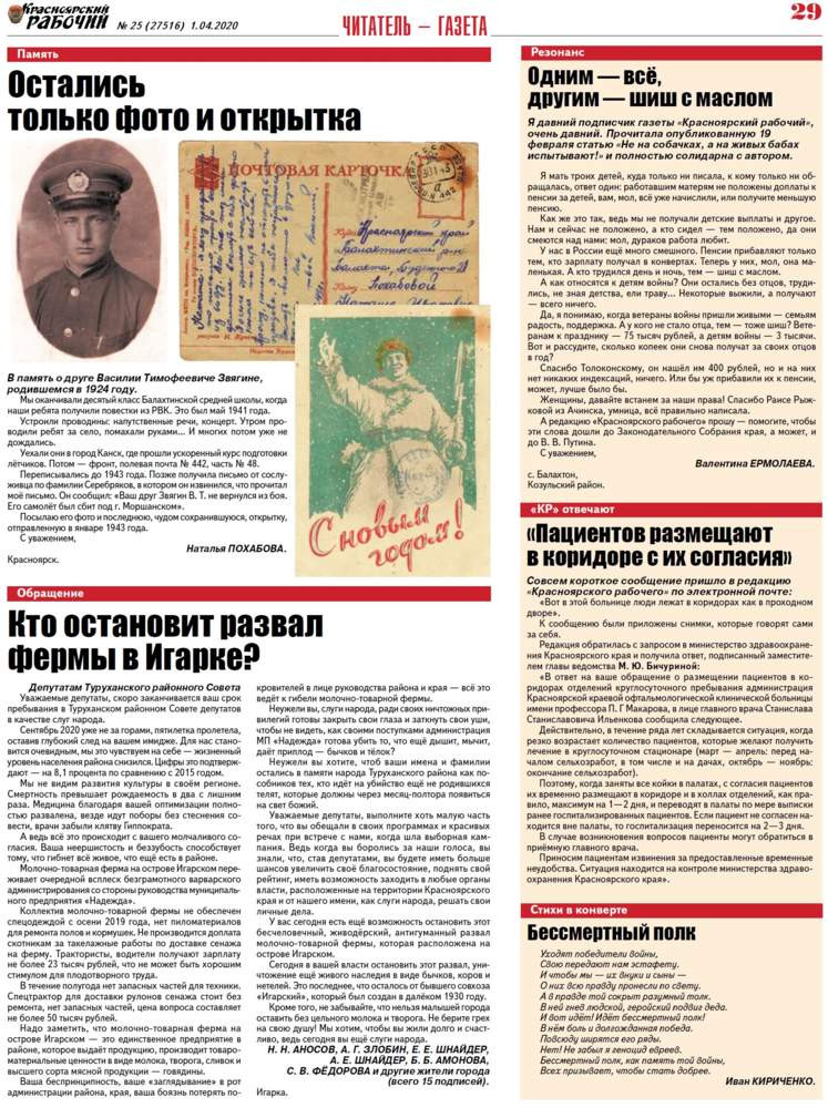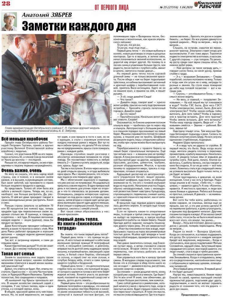 О чём пишет "Красноярский рабочий" в среду, 1 апреля 2020 года