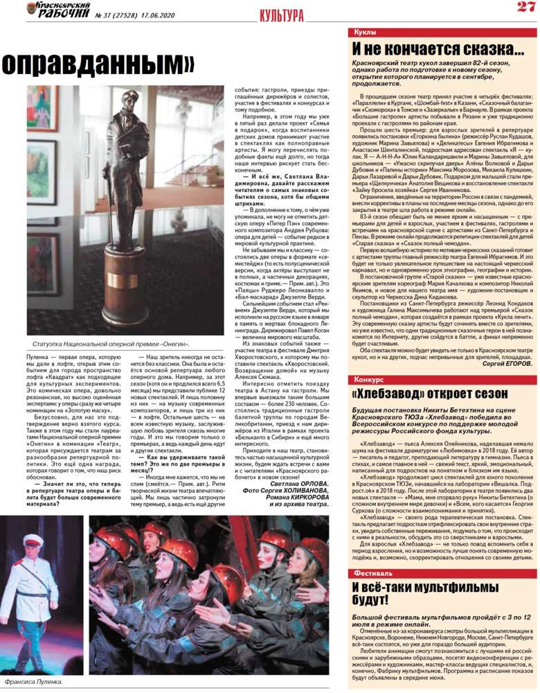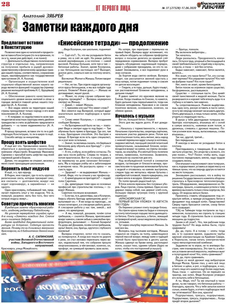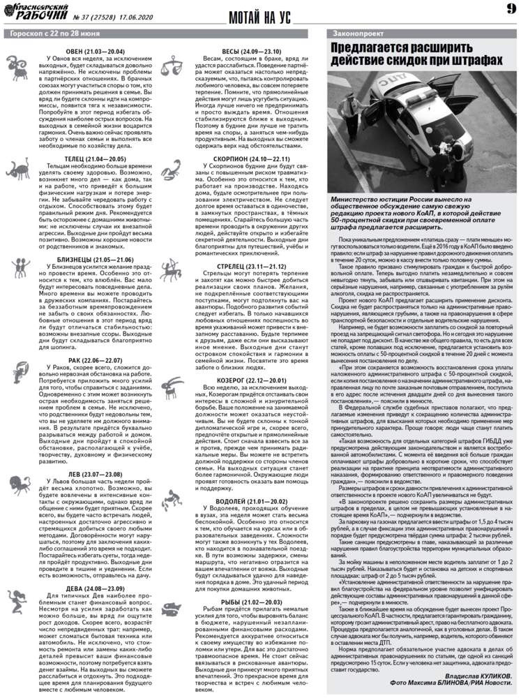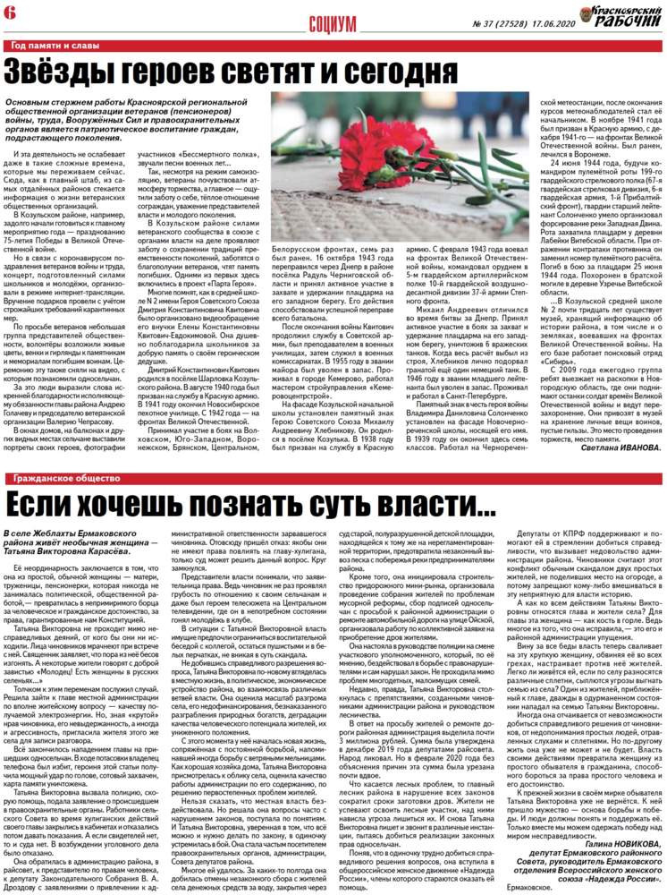 О чём пишет "Красноярский рабочий" в среду, 17 июня 2020 года