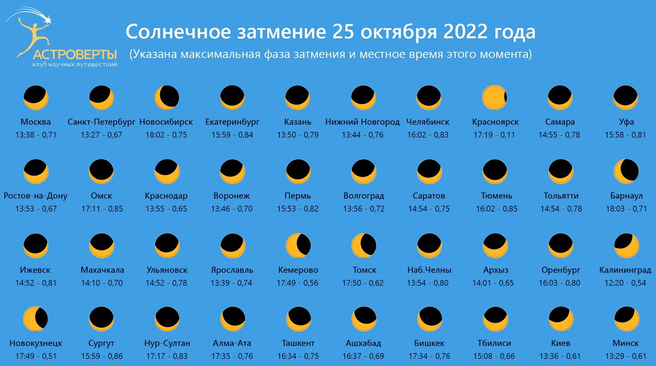 25 октября жители Красноярска смогут увидеть частное солнечное затмение