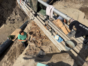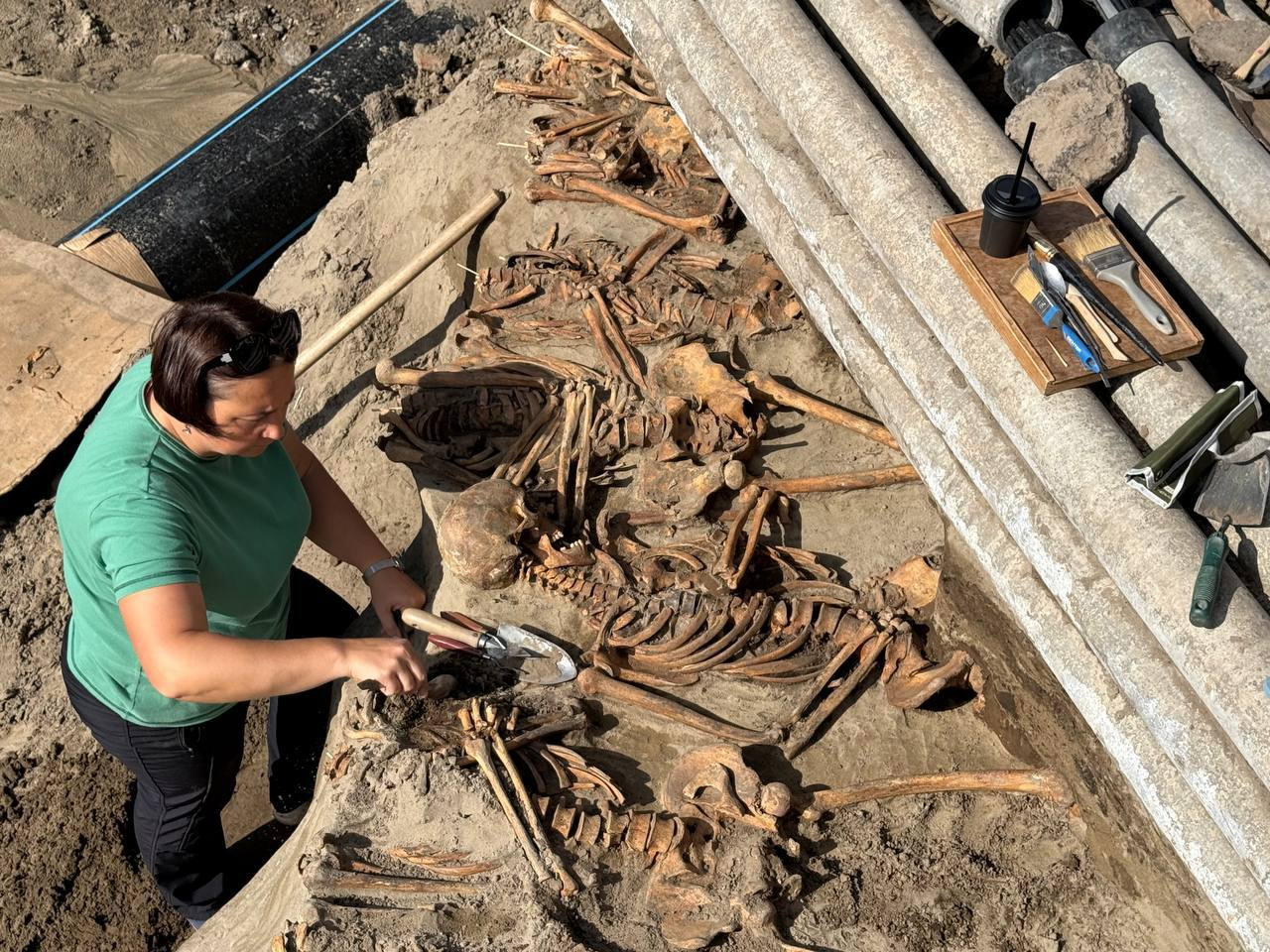 Уже обнаружено 26 скелетов в захоронении: 10 отправлены в камеральную лабораторию для работы с ними антропологов, 16 сейчас зачищаются.