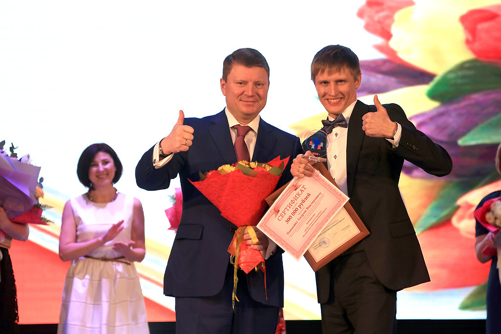 Глава города объявил имя победителя конкурса. Им стал педагог-психолог детского сада № 91 Андрей Панькин. Для своих подопечных он разработал квест-игры с элементами конструирования. Победителю была вручена премия главы города в размере 300 тысяч рублей.