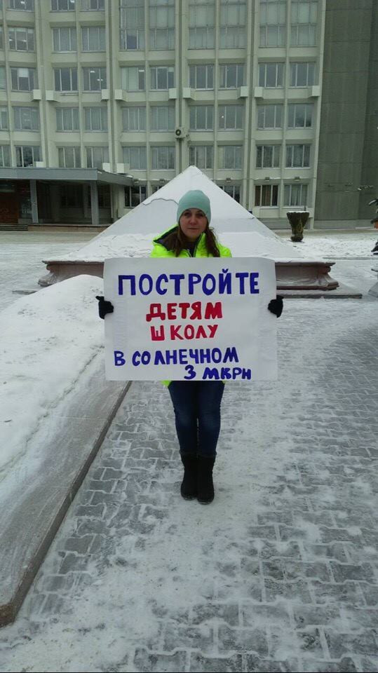 Жители 3-го микрорайона «Солнечный» решили устроить серию одиночных пикетов с 13 по 15 февраля, требуя строительства обещанных школы и детского сада.
