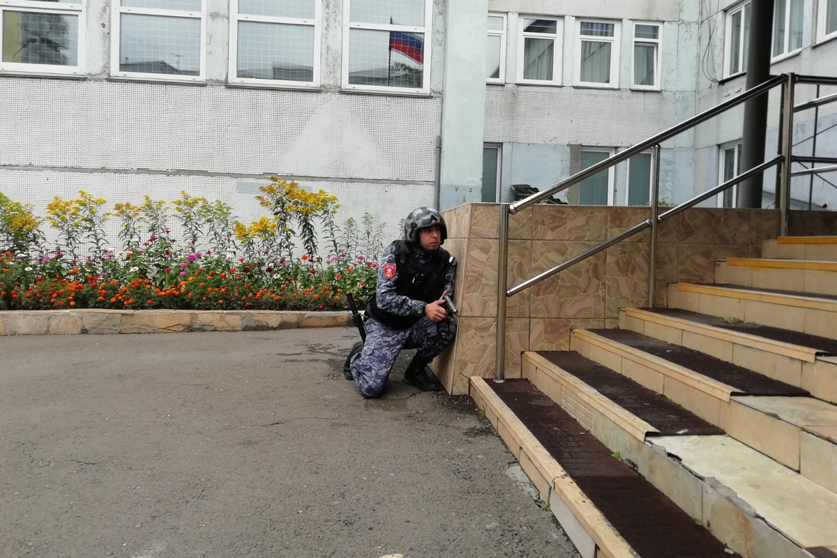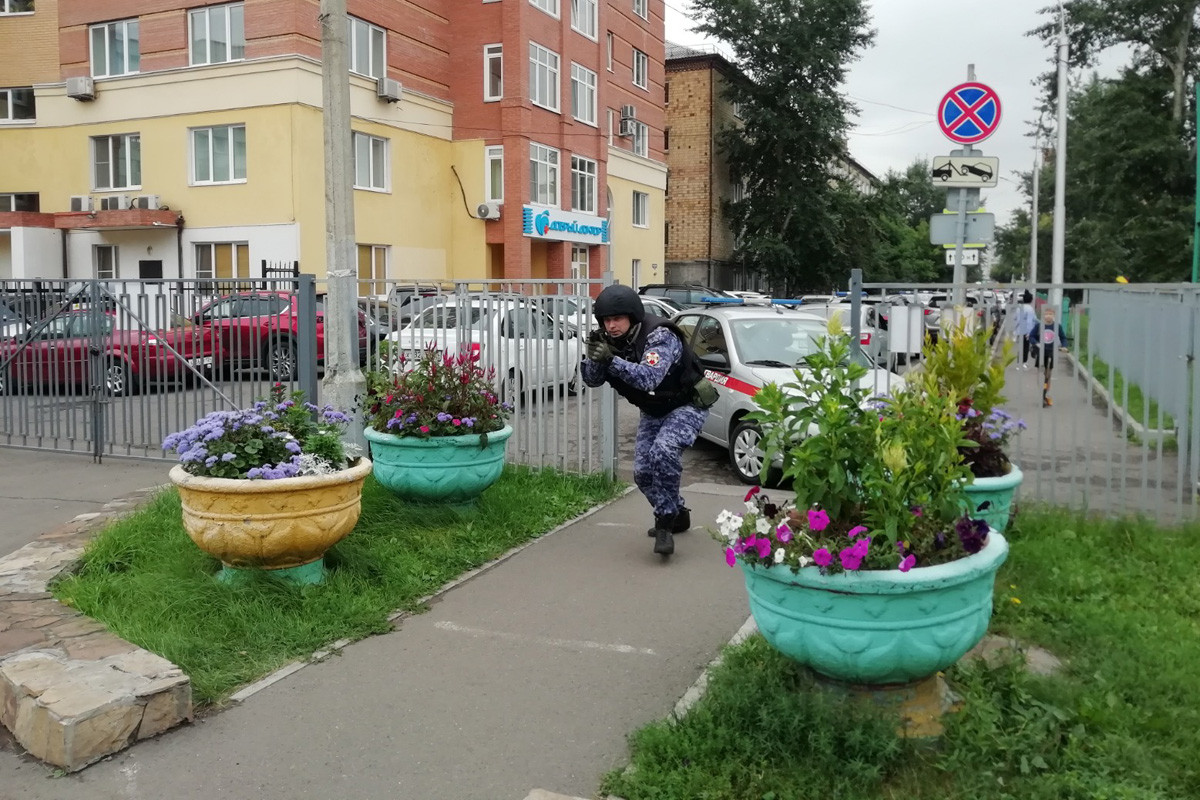 "В первую очередь сотрудник частной охранной организации должен выполнить свои функции в полном объёме: нажать тревожную кнопку, вызвать спецслужбы, сообщить ответственному за безопасность в школе о злоумышленнике. Также сегодня отрабатывали передачу информации руководителю образовательного учреждения. Директор должен точно знать, что в школе никто не остался, никого не потеряли", - пояснил командир второго батальона полиции Управления вневедомственной охраны Росгвардии по Красноярску Максим Фарваев.