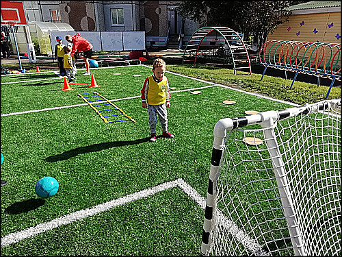 В красноярских детских садах № 43 и 140 появились футбольные поля, которые сделаны по спортивным стандартам - 20-сантиметровая подложка из щебня разного размера, дренаж, искусственное травяное покрытие, белоснежная разметка.