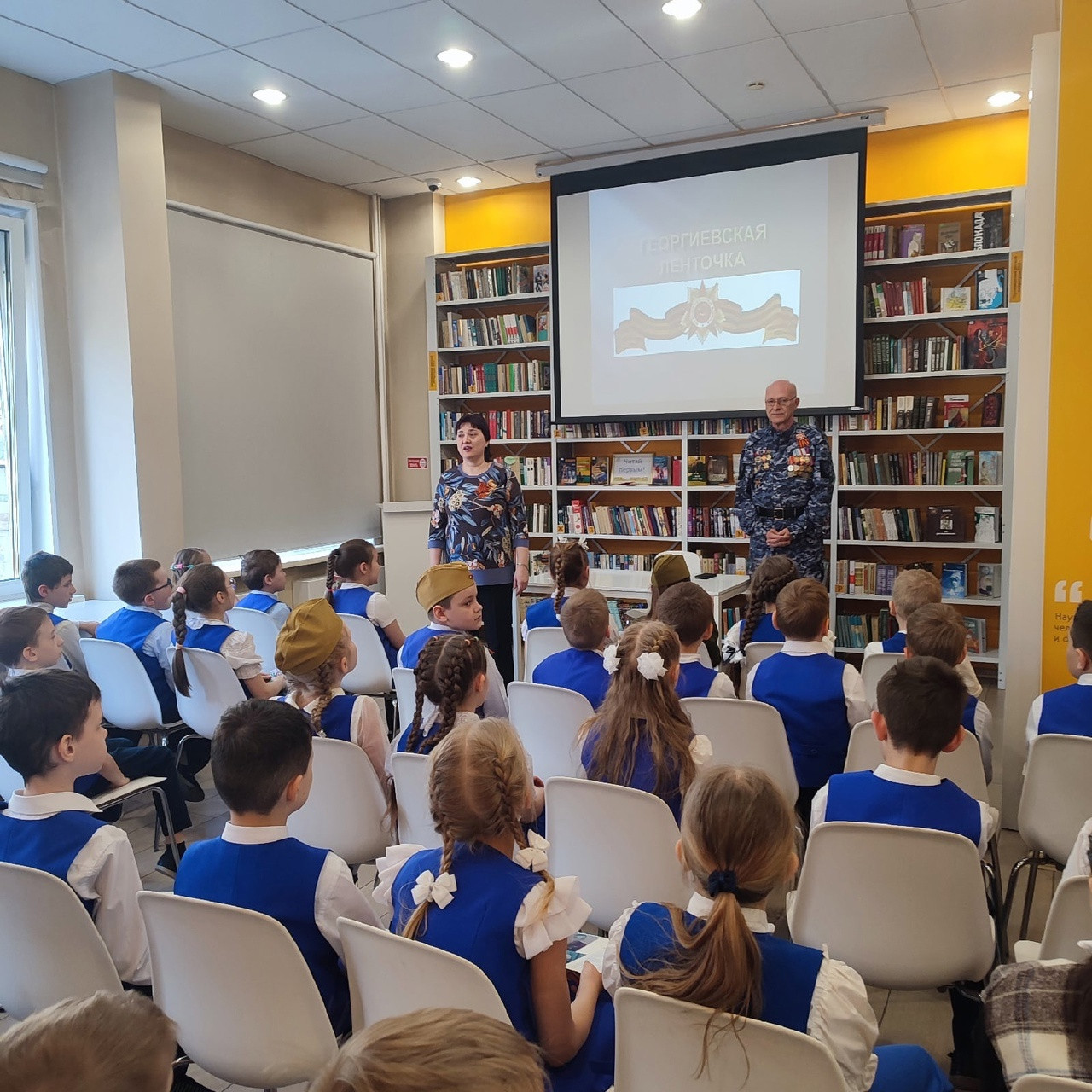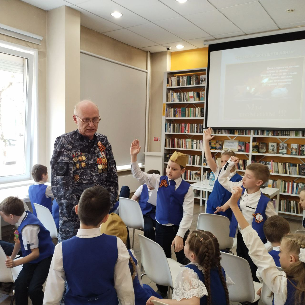 Интересная патриотическая встреча прошла в Красноярской городской детской библиотека имени С. В. Михалкова. Школьники 2-х классов лицея № 6 "Перспектива" встретились с членом общественного совета при городской полиции, председателем совета ветеранов полка патрульно-постовой службы полиции управления МВД России «Красноярское», ветераном боевых действий на Северном Кавказе, майором полиции в отставке Павлом Янкун.