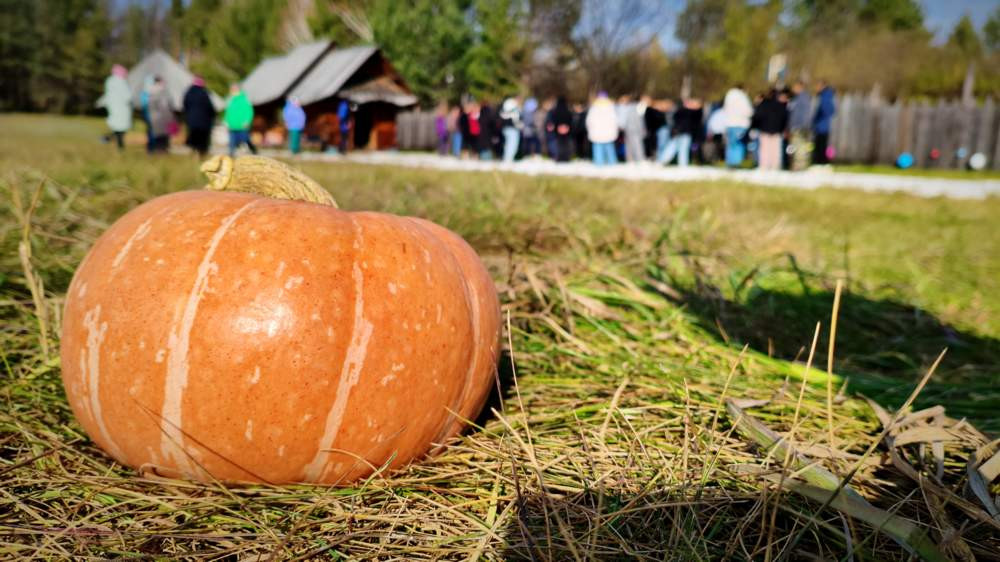 На станции «Кёрлинг» участники марафона соревновались в метании на дальность ярких оранжевых тыкв.