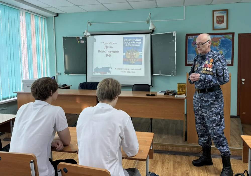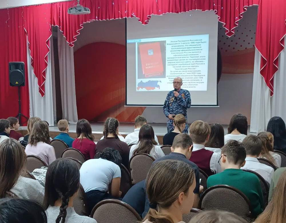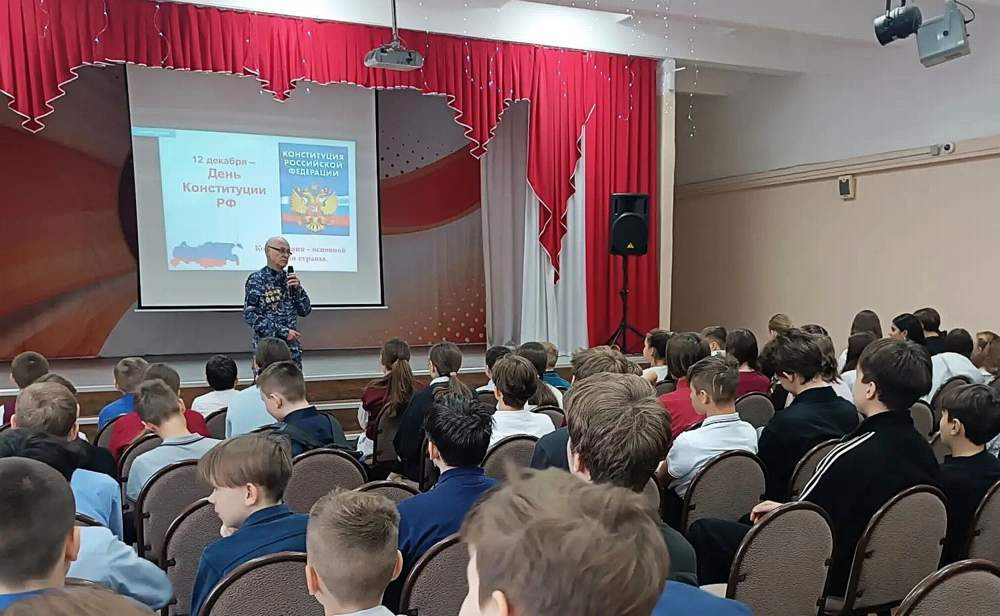 Классные часы «Конституция - основной закон государства», посвящённые главному закону нашей страны, провёл для учащихся 5 - 7 классов гимназии № 4 и 10-х классов лицея №12 член общественного совета при городской полиции, ветеран боевых действий на Северном Кавказе и председатель совета ветеранов полка ППС полиции управления МВД России "Красноярское" Павел Анатольевич Янкун.
