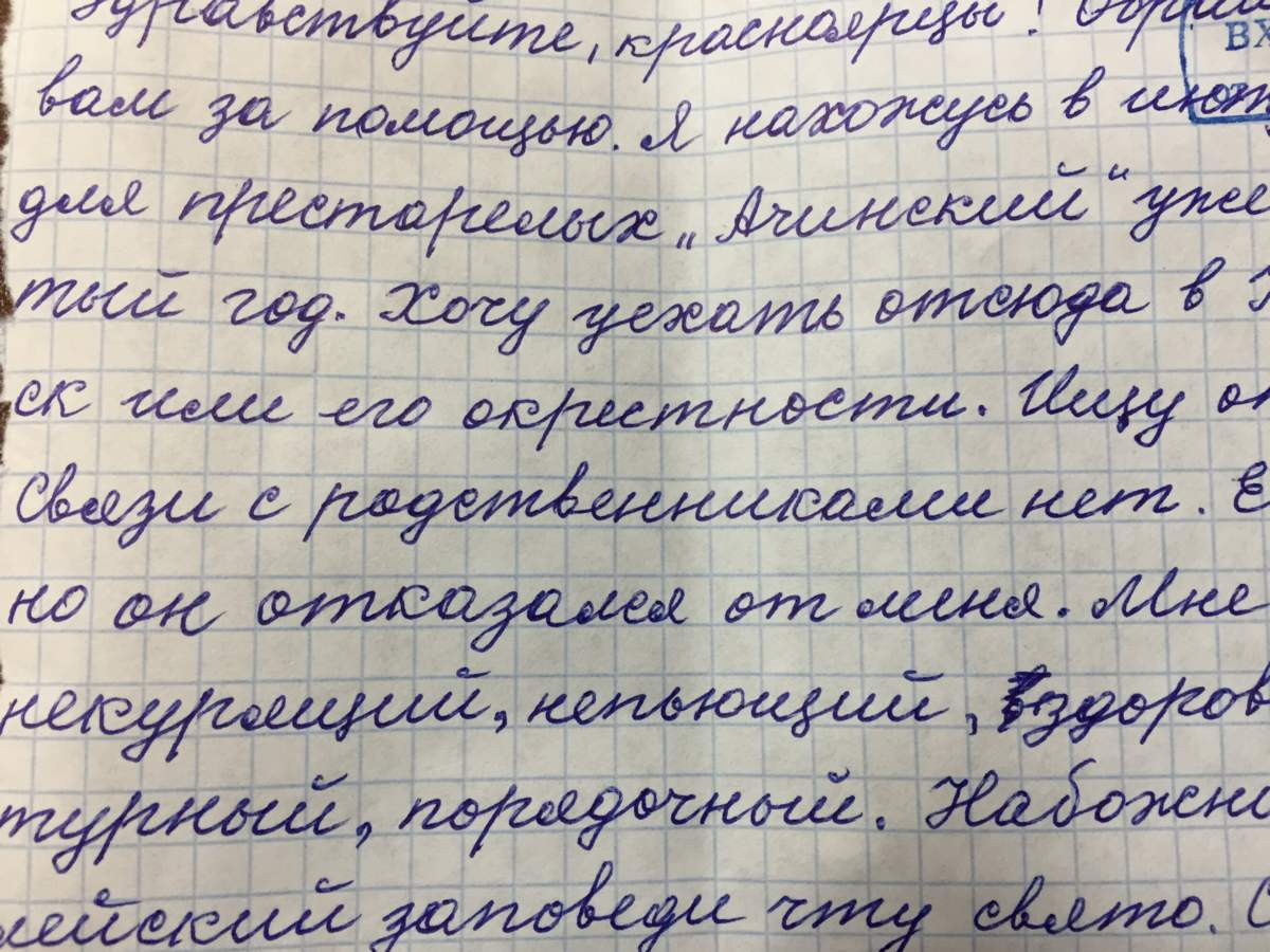 Я нахожусь в интернате для престарелых "Ачинский" уже четвёртый год и хочу уехать отсюда в Красноярск или окрестности. Ищу опекуна. Связей с родственниками у меня нет. Есть брат, но он отказался от меня.