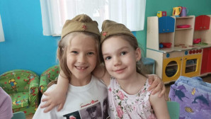 Была я приглашена в эти же детсады и на праздники в честь Дня Победы. Здесь тоже были показаны предметы, хранимые в семье, касающиеся темы войны. Цель занятий - познакомить детей с понятиями "домашний архив", "пилотка", "звёздочка на пилотке", "медали", "ордена", "георгиевская лента", "патриот", "память".