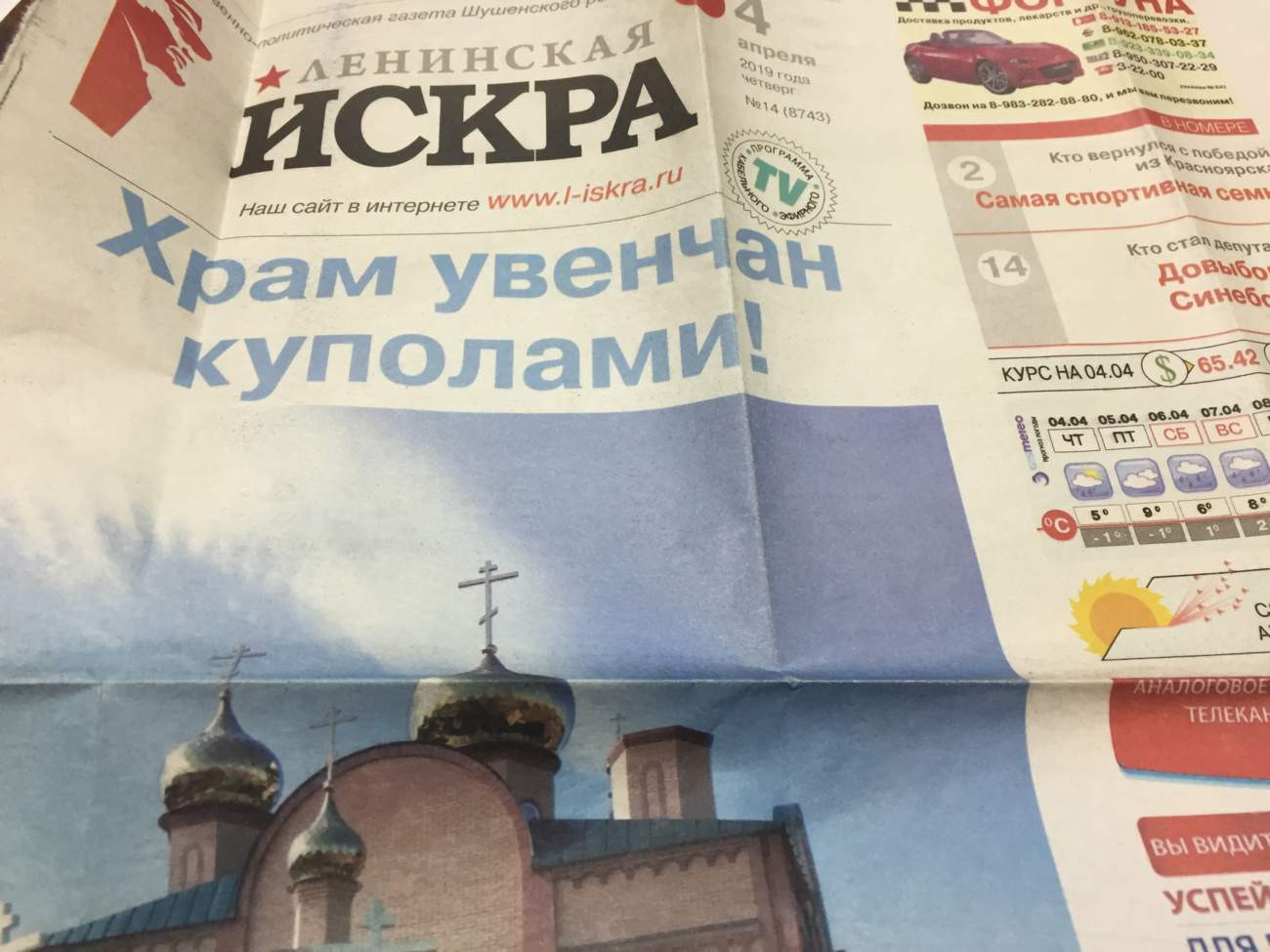 Даже наша районная газета "Ленинская искра" восторженно поддакивает перерождению традиционной культуры в культуру религиозную. При постоянной информационной поддержке издания было воздвигнуто самое заметное в посёлке здание -- местной церкви.