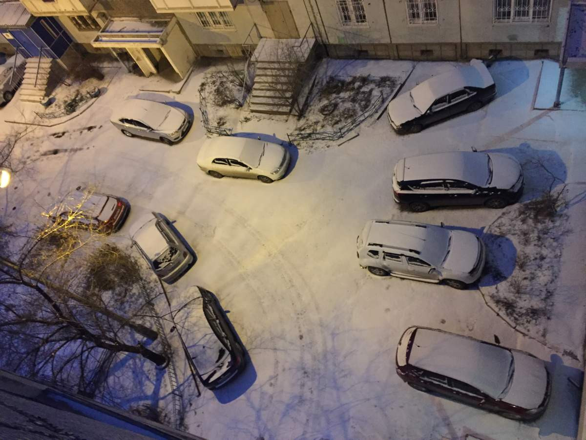 В Красноярске ночью выпал снег, на дорогах и тротуарах гололедица