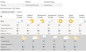 В городе Красноярске 14 июня ожидается переменная облачность, преимущественно без осадков. Ветер западной четверти 5 - 10 метров в секунду. Температура воздуха ночью 16 - 18, днём 31 - 33 градуса.