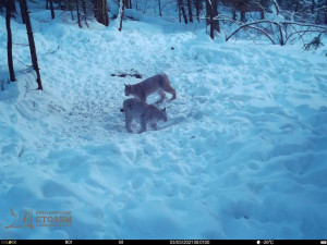 В национальном парке "Красноярские Столбы" появились редкие дневные снимки рысей, полученные в закрытой заповедной зоне с помощью фоторегистратора.