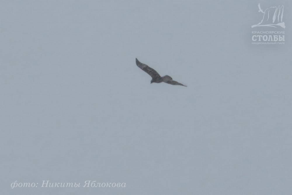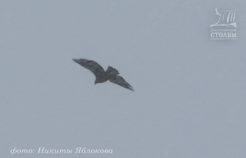 Объяснение этому факту нашлось позже: на южном склоне проверял свои охотничьи угодья беркут. В конце прошлого года государственные инспекторы национального парка сообщали о встрече крупной хищной птицы, пролетающей над Базаихой в данном районе. В этот раз удалось точно идентифицировать вид птицы и сделать несколько подтверждающих фото.