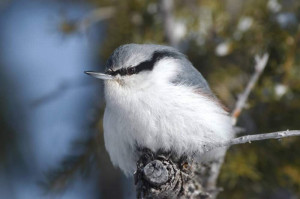 Национальный парк «Шушенский бор» зимой служит убежищем для богатого разнообразия пернатых. Среди наиболее часто встречающихся представителей орнитофауны можно встретить снегирей, поползней, дятлов, воробьёв, щеглов, а также синиц различных видов, включая, ополовника, большую синицу и московку.