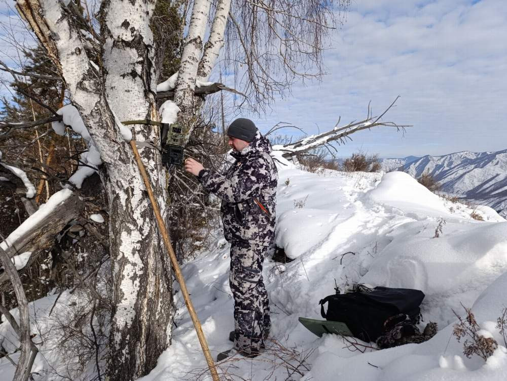 В ходе зимней экспедиции на территорию Саяно-Шушенского заповедника были получены новые фото- и видео самки снежного барса и её двух котят, родившихся в 2024 году.