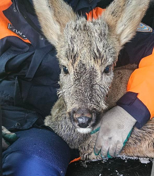 В городе Ачинске спасатели помогли обессиленной молодой косуле
